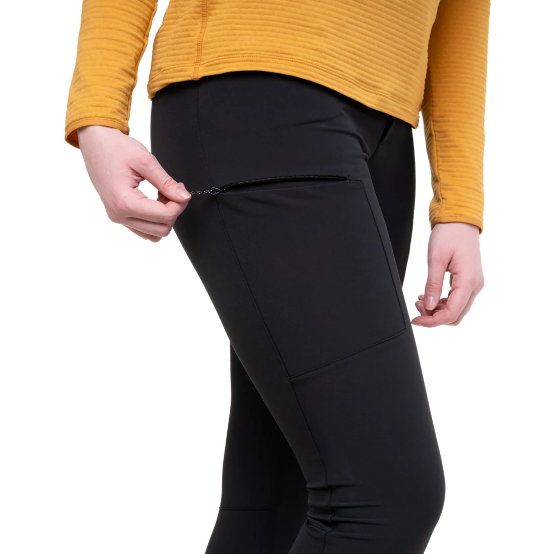 A soft shell tight for hiking and fast-moving mountain sports in cool conditions.