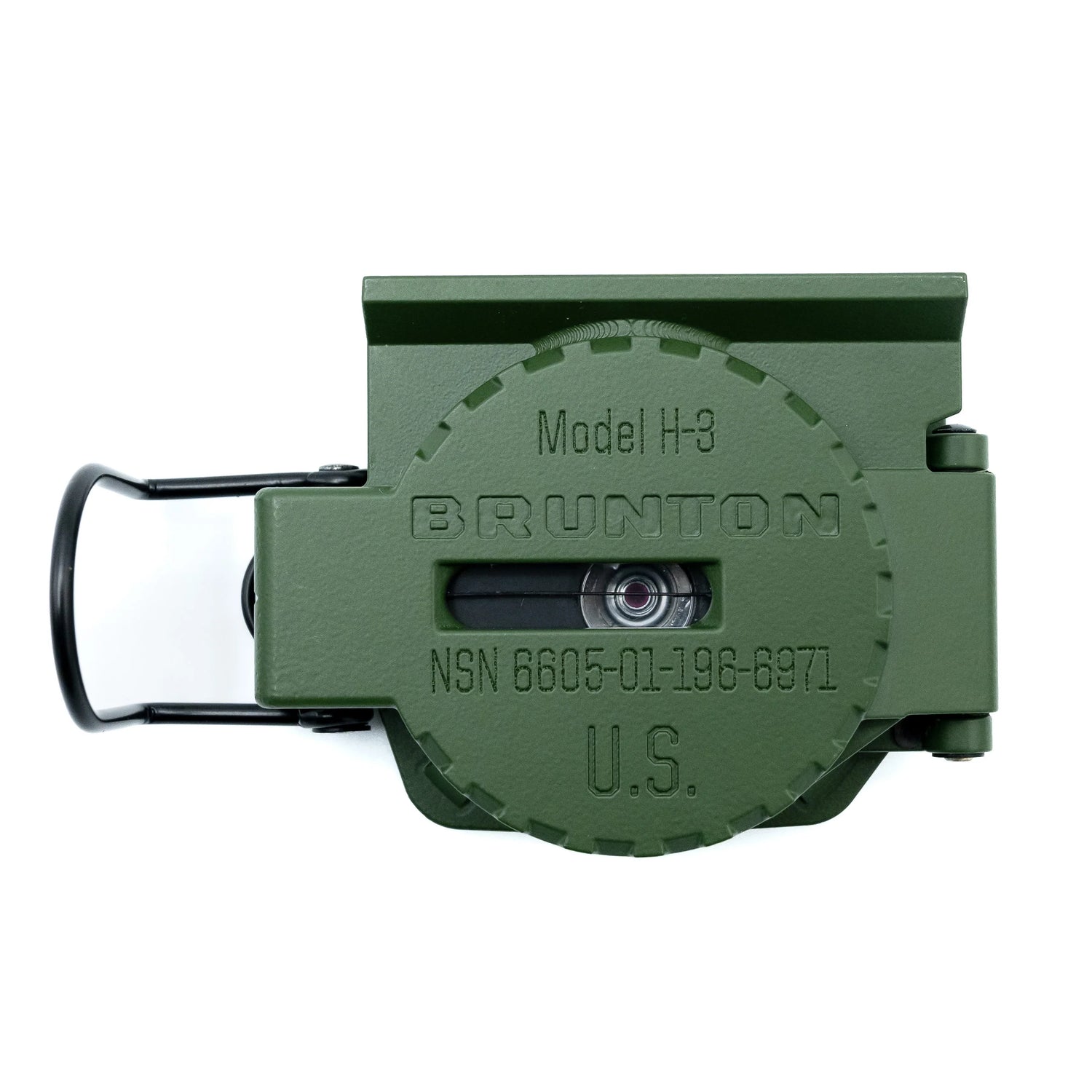 Faster needle. Tougher bezel. Tritium glow. All-American grit. The Brunton H-3 is illuminated with tritium and meets all US military specifications for this most popular type of soldiers' compass. Featuring a new magnetic needle that is exceptionally fast, smooth, and stable, a glass lens, a durable bezel that won't lose its clicks, and a unique and improved carrying case, the Brunton H-3 has a clear advantage over its competition. Brunton is proud to add this Wyoming-made lensatic model to our growing lineup of quality military compasses. Made in the USA in Riverton, Wyoming.