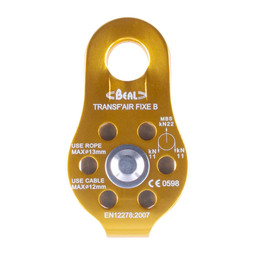 The Transf'Air Fixe B pulley is designed to manage load deflection, facilitate hauling, and be used in conjunction with a mechanical blocker. Compact and lightweight, it is exceptionally simple to handle.