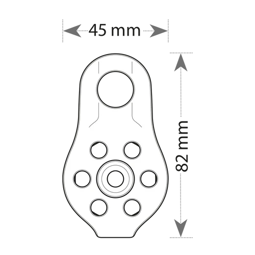 The pulley achieves very high efficiency through its sheave mounted on ball bearings. These bearings ensure optimal performance during hauling operations and enhance the device's longevity. The pulley is further reinforced with a stainless steel shaft and washer. Additionally, to maintain traceability, each pulley is assigned a unique identification number.