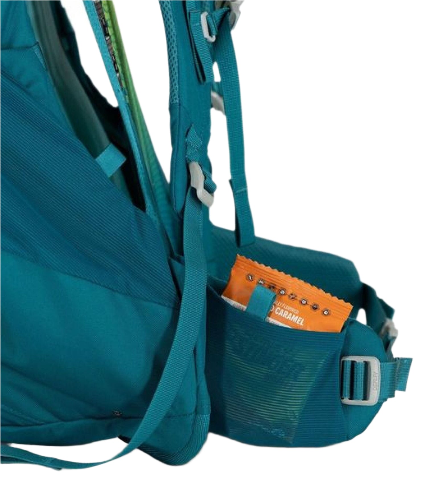 - A mesh hipbelt pocket offers handy storage for small items or trail snacks.