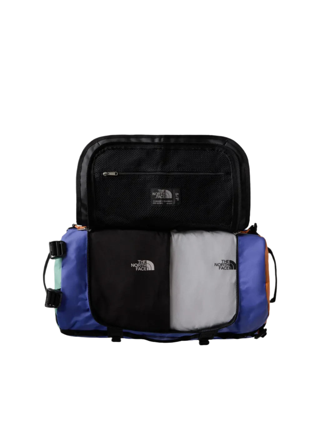 The Base Camp Duffel is an explorer's go-to, trusted from remote trails to bustling city streets. Now crafted from water-resistant recycled materials, it delivers the same legendary durability with a 50-litre capacity for your essentials. Carry it as a duffel with the padded side handles or wear it backpack-style using the detachable, adjustable ergonomic shoulder straps. The spacious main compartment opens wide for easy packing, while four compression straps help you squeeze in a little extra when needed. Built for adventure, designed for convenience.