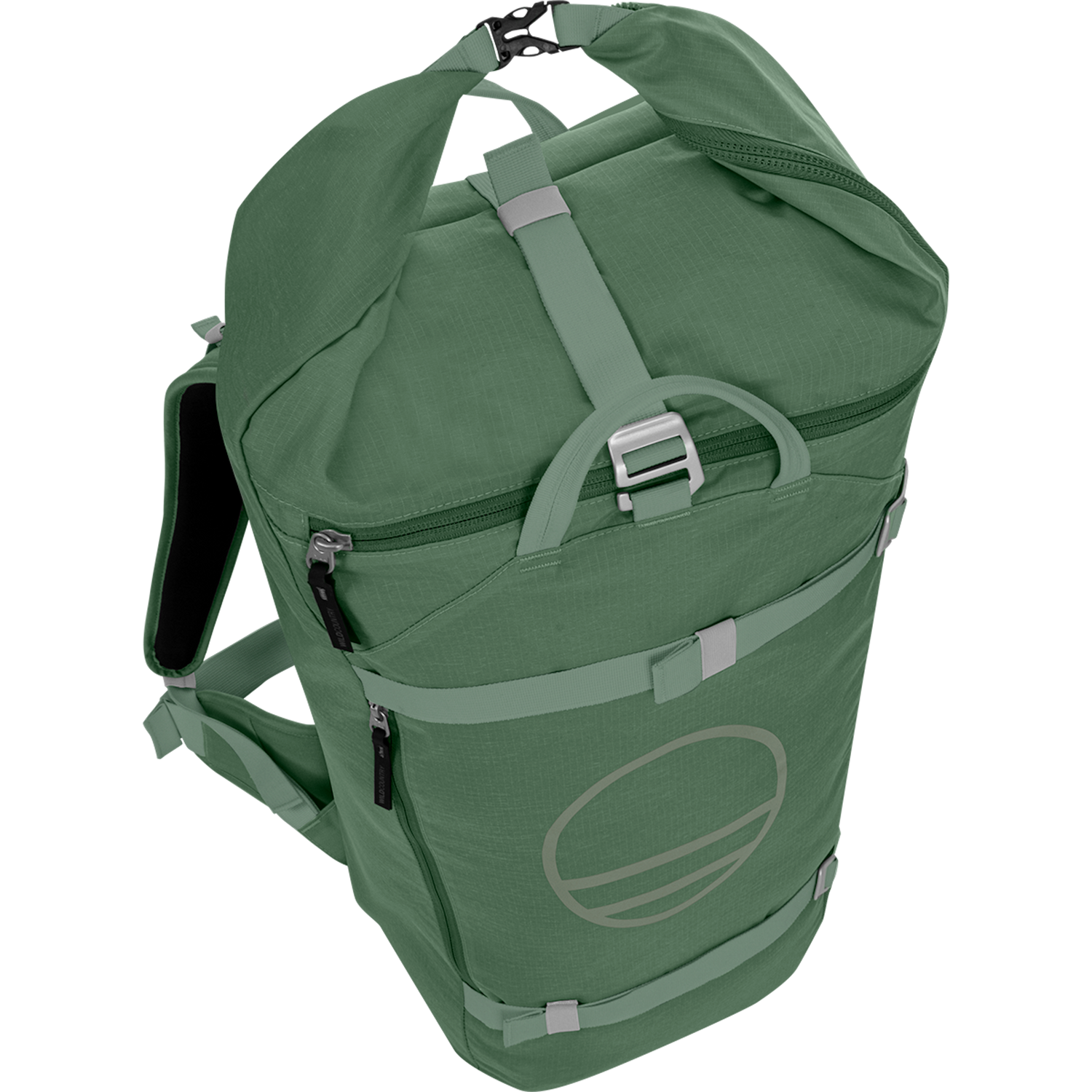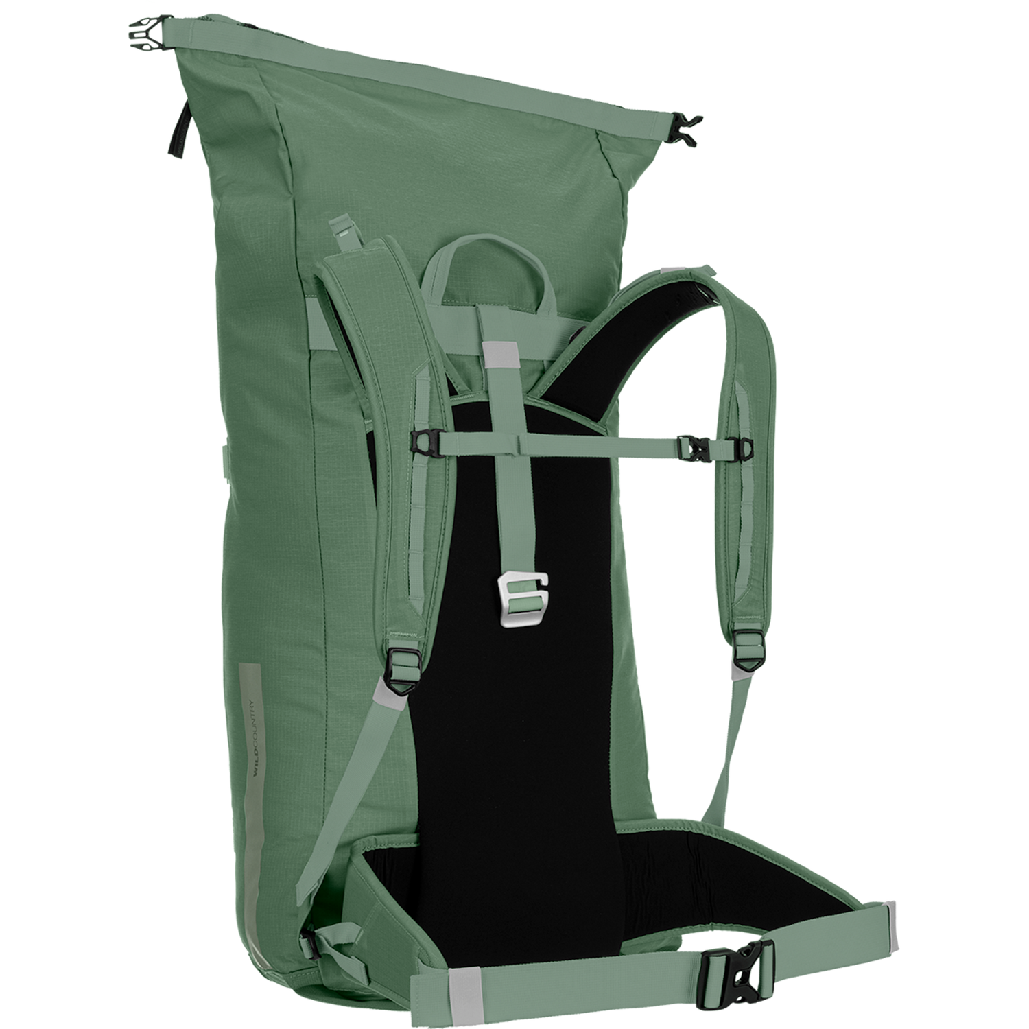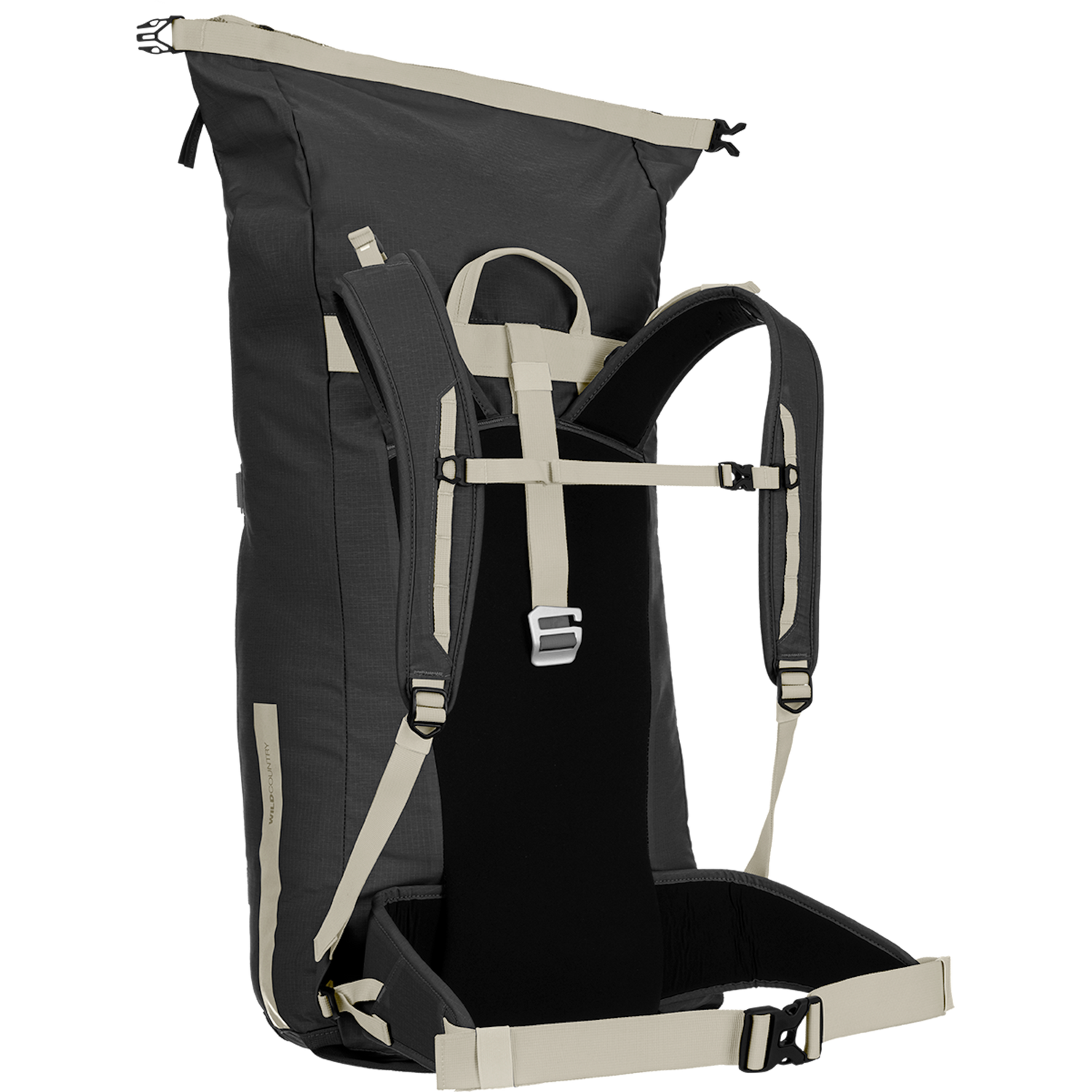 The roll-top closure system and volume-adjustable compression straps ensure efficient packing and a stable carry, even when the pack isn’t full. Built with abrasion-resistant ripstop fabric, it handles rough usage with ease. Comfort is prioritised with a foam back panel, ergonomically designed padded shoulder straps, and a removable waistbelt and chest strap. Additional storage options, including a large zipped guidebook pocket and a secure external pocket for valuables, make this bag the perfect cragging companion.