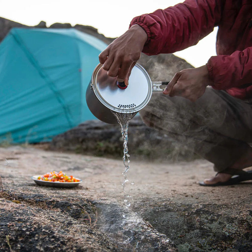 Compact nonstick set with premium Fusion ceramic, perfect for making complex backcountry meals.