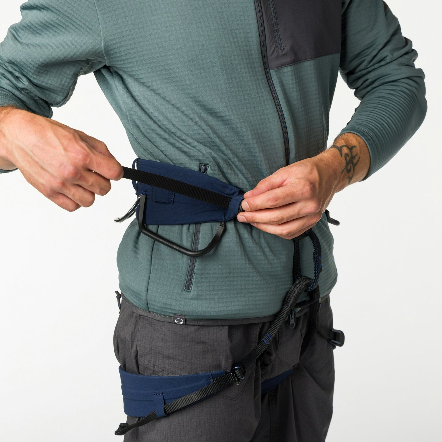 - The 3-webbing belt construction, paired with a wide waistbelt and leg loops, maximises support, comfort, and pressure distribution.