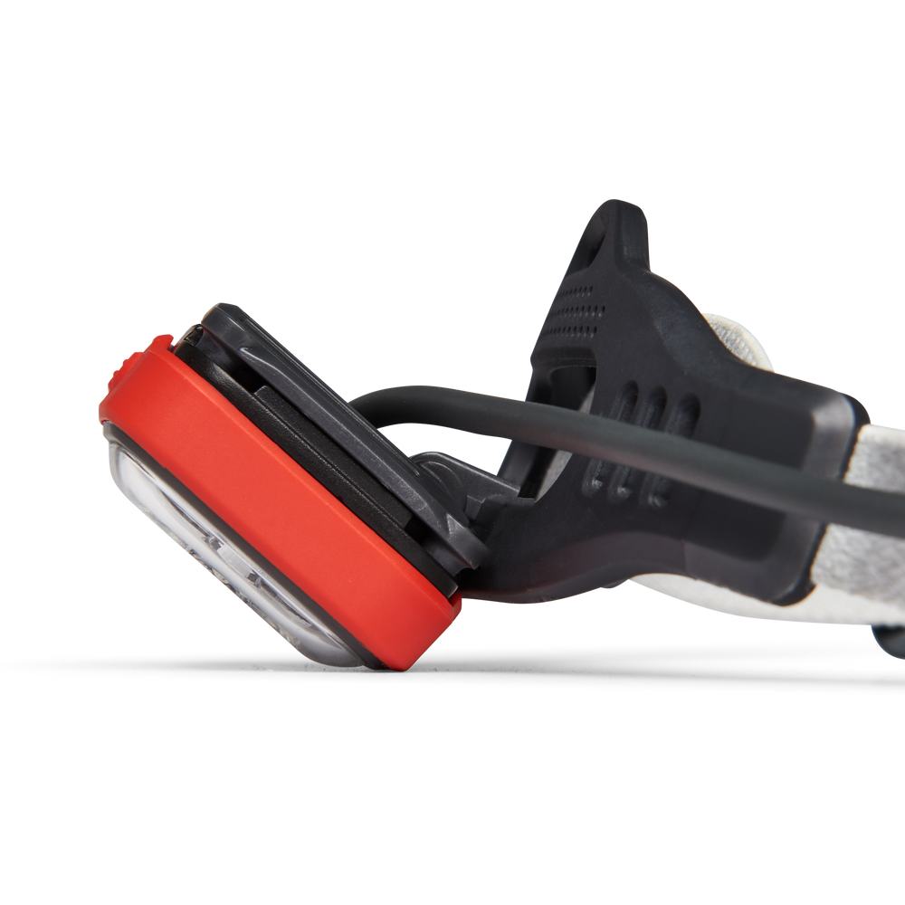 The interchangeable, magnetic battery pack provides sufficient capacity to last throughout the night at moderate settings and can be effortlessly swapped one-handed without pausing for a recharge. The Comfort Cradle™ sits low on the head, contours naturally to prevent bouncing, and incorporates cushioning for enhanced comfort during prolonged use.