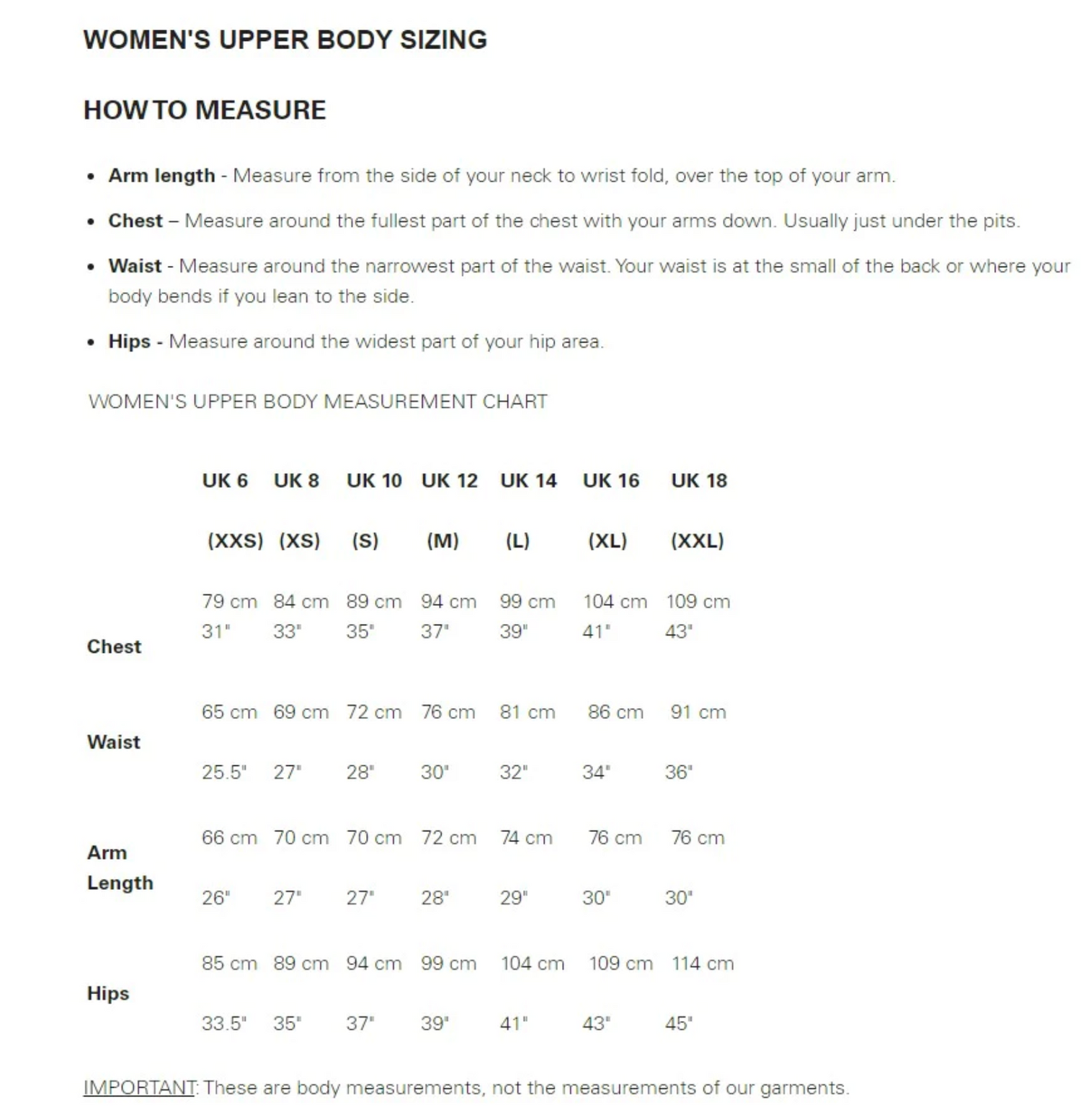 • The centre back length for size 10 measures 86 cm / 33.9 inches.