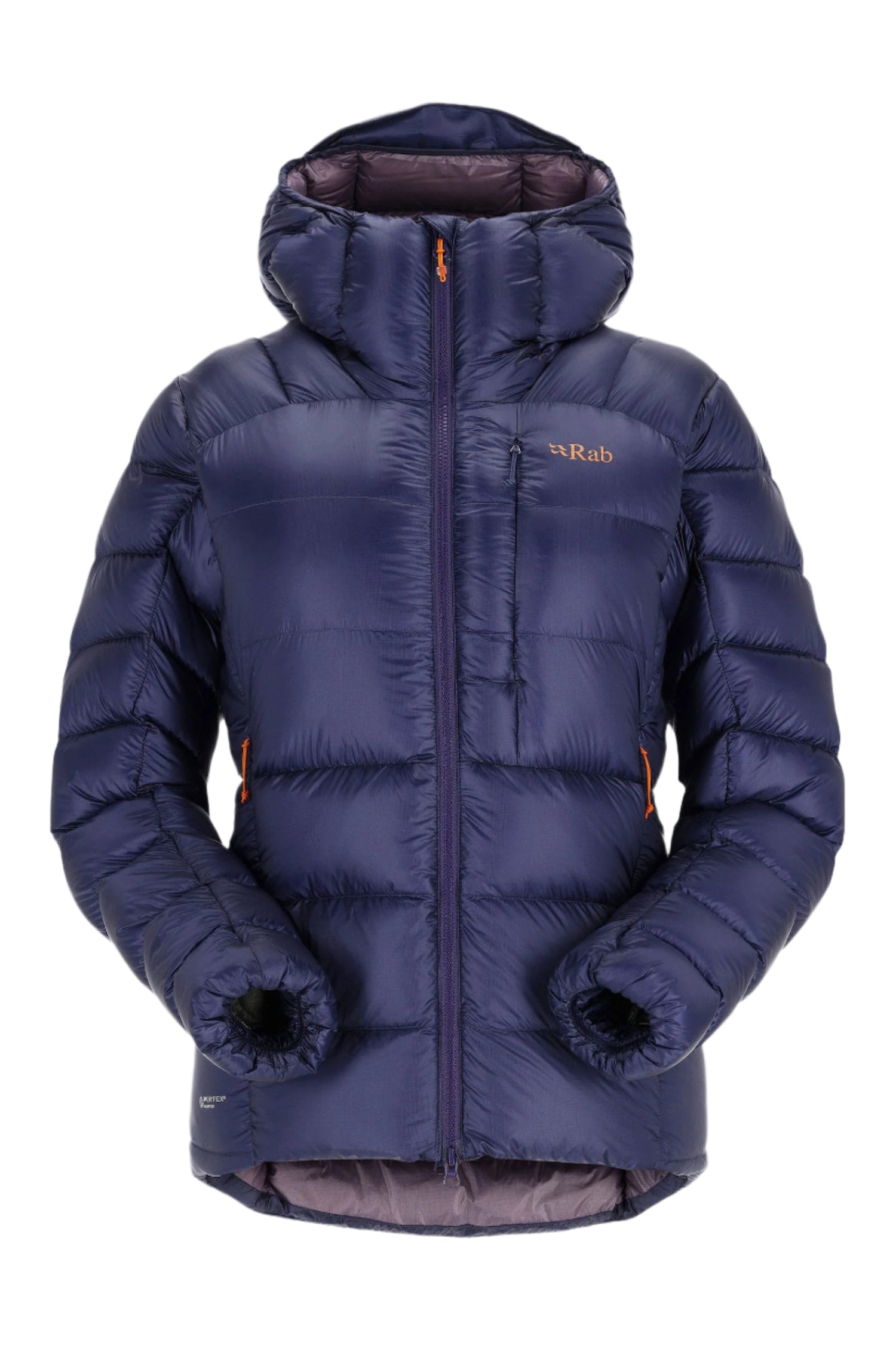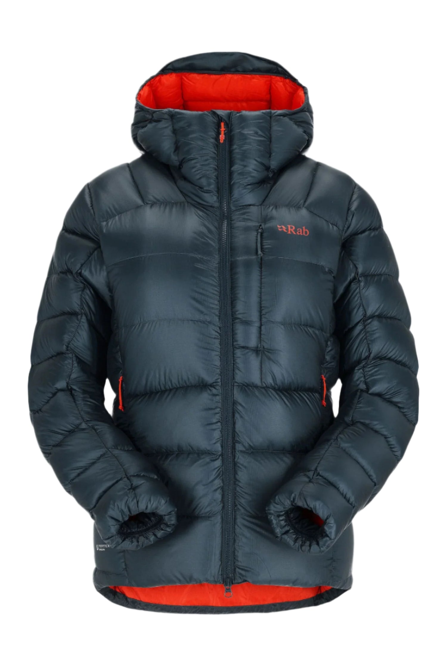 - Includes a helmet-compatible down-filled hood with rear elasticated, concealed internal adjustment, and a stiffened peak for added protection.