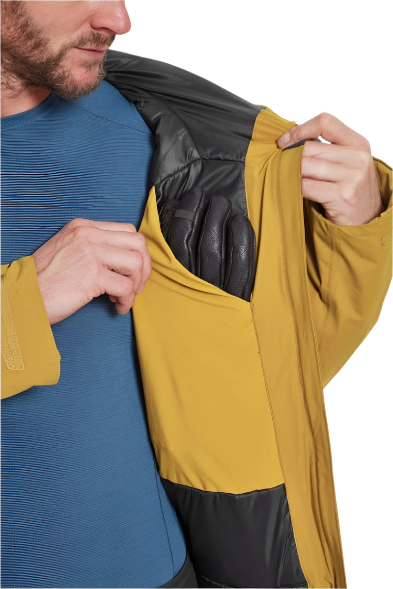 • Its hood is built to withstand whiteout conditions, offering three-way adjustment, a stiffened peak, helmet compatibility, and a wind-blocking collar system.