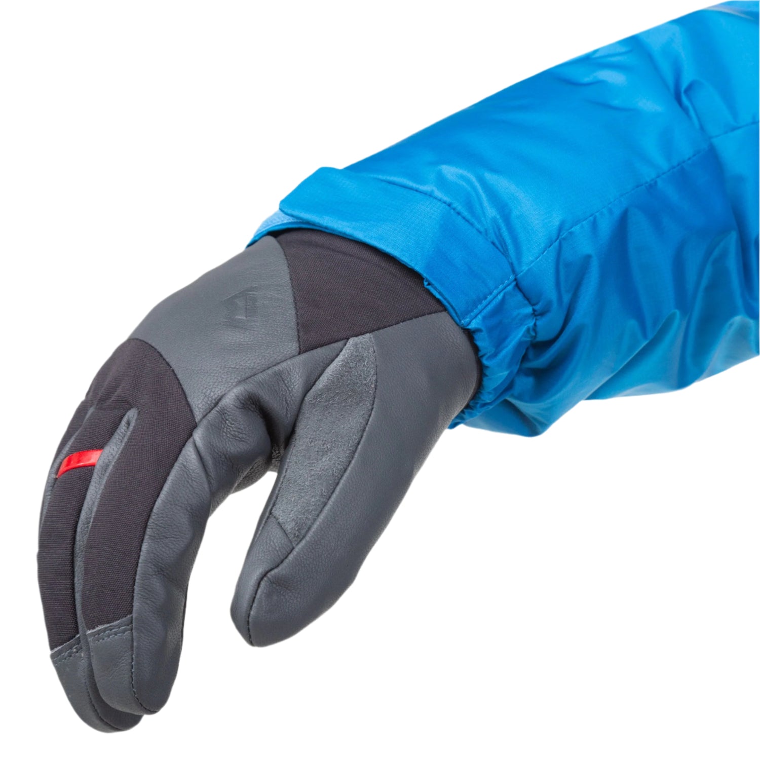 - Adjustable Mountain HC Hood fits over a climbing helmet.
