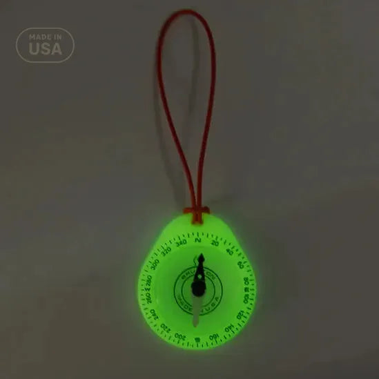 This glow-in-the-dark tag-along compass ensures you never lose your way, even in low light. Its vibrant, short lanyard is perfect for securing backpacks, keys, or jackets, keeping a reliable compass close at hand wherever you go.