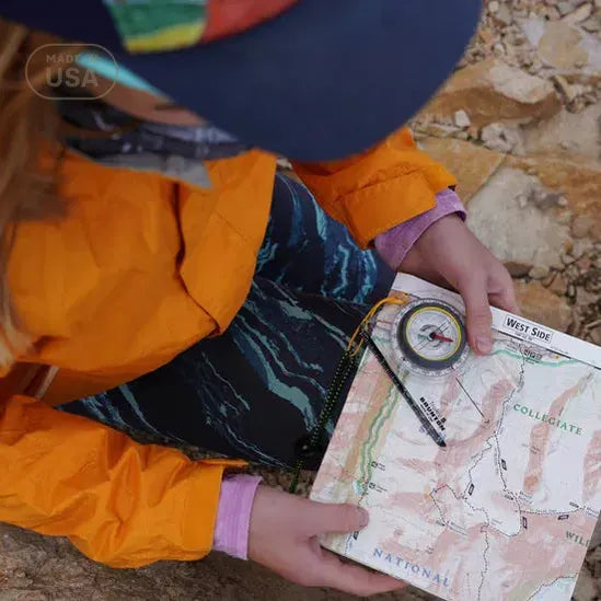 Designed for precision navigation, this compass makes detailed map work effortless. Its built-in map magnifier ensures every detail is visible, while the oversized baseplate enhances accuracy during triangulation. Crafted in Riverton, Wyoming, USA, this compass is built for reliability and performance.