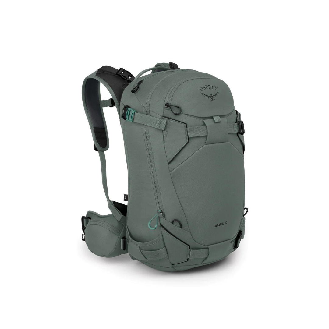 The Osprey Kresta 30 Women's Backpack balances mobility with ample space for all-mountain and freeride adventures, whether in or out of bounds. It includes a convenient avalanche pocket, a main compartment for wet/dry gear, an insulated hydration sleeve, a snowshed back panel, easy-to-use buckles and zippers, and options for carrying skis or snowboards.
