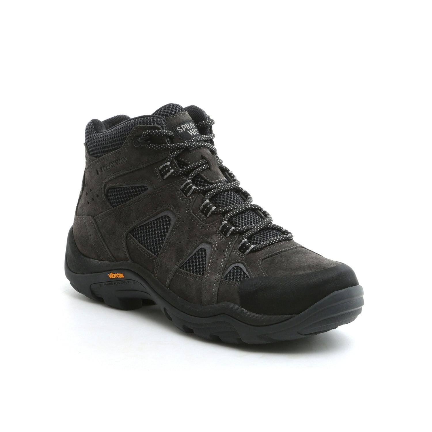 Mid cut boot suede and mesh vibram for the trails and hills.