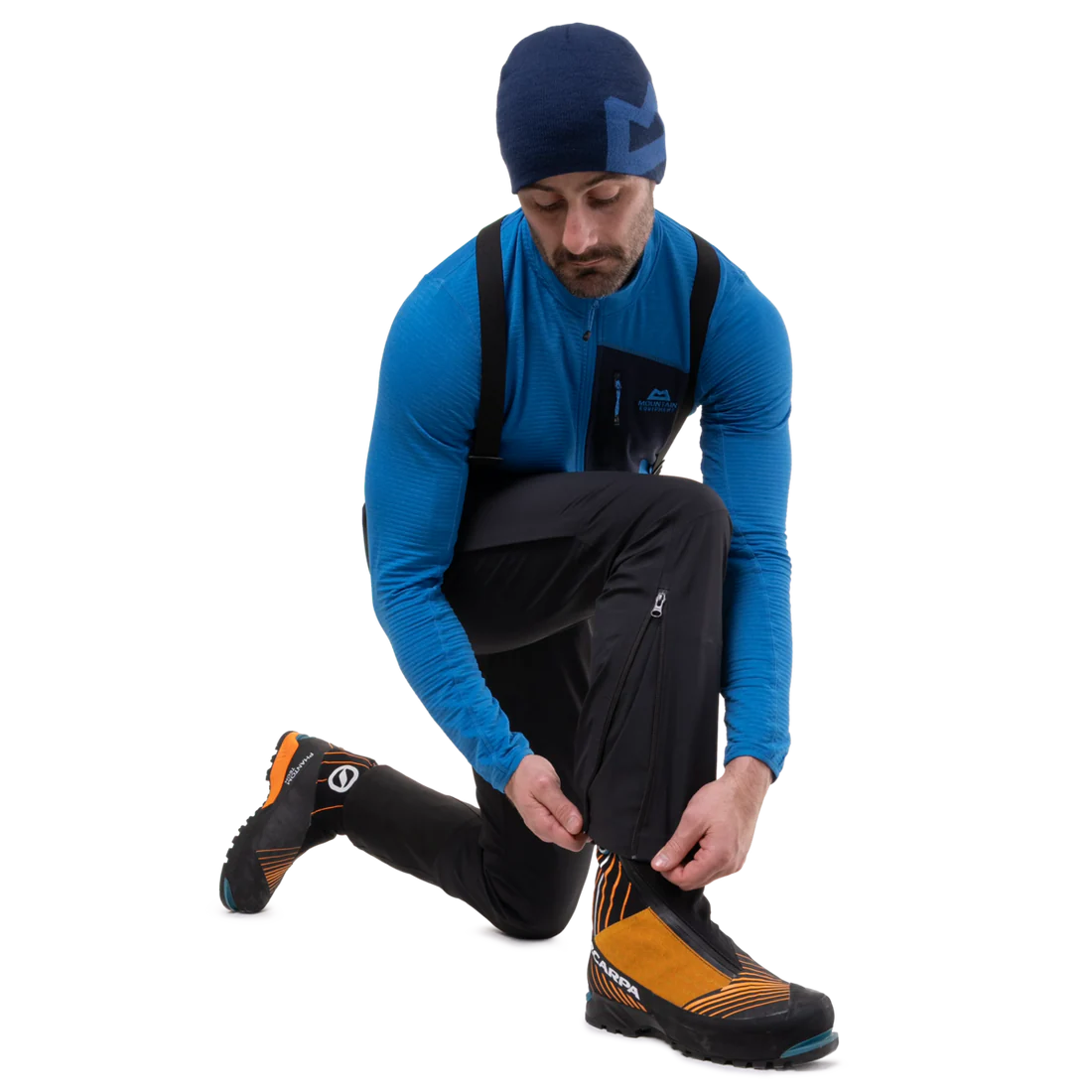 - Ankle zips with internal gusset panel to accommodate mountain boots