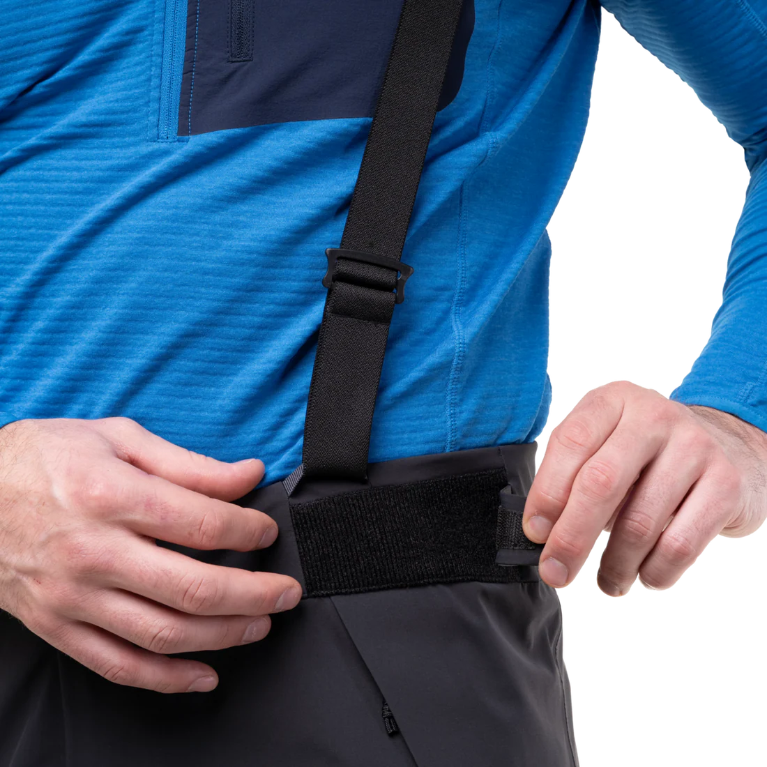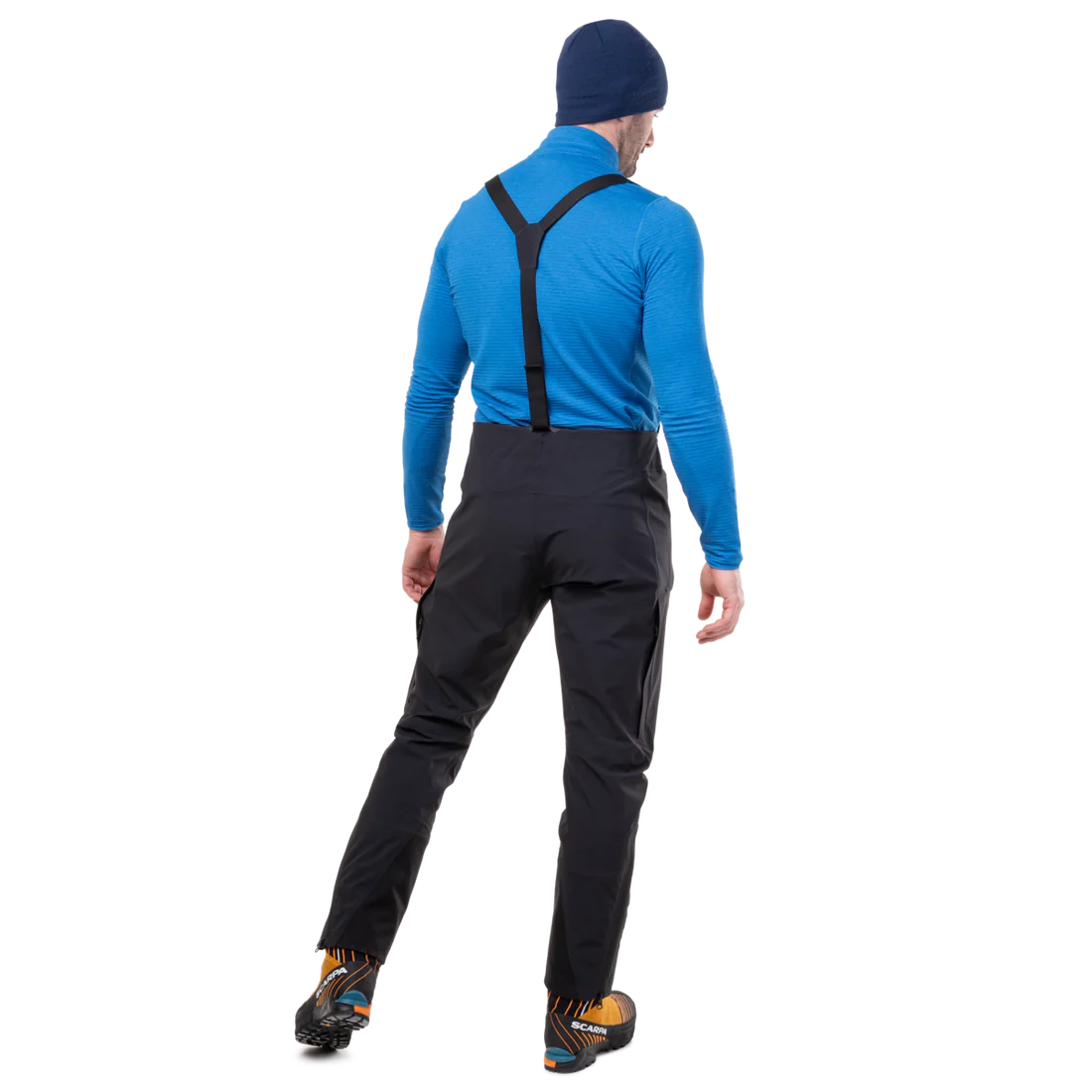 The EXOLITE XP fabric is durably weather-resistant, and key seams are taped to increase protection even further from both wind and water ingress. It's comfortable to wear either next to the skin or over a base layer in cold conditions. Zip-out internal gaiters give an extra seal whilst post-holing through fresh snow, and there are 500D polyamide reinforced kick strips to limit crampon scrapes. The adjustable waistband sits flat under a harness and provides rapid fine-tuning as you change layers after a long approach.