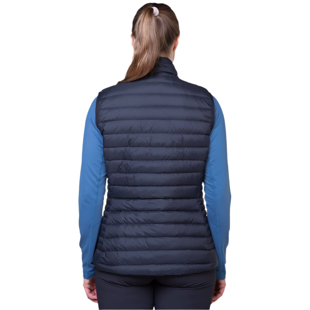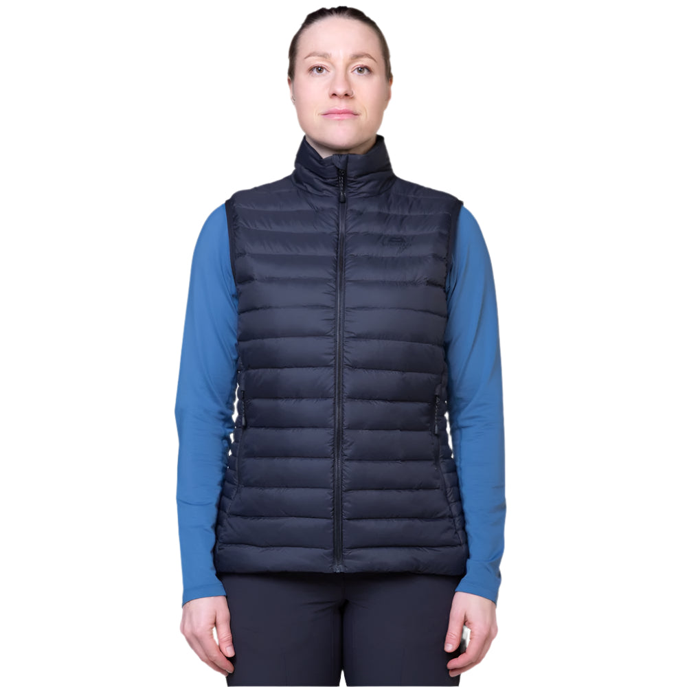 The Earthrise Women's Vest is warm and sustainable, featuring 100% recycled down and fabrics. The insulation is made from reclaimed duck and goose down, processed to maintain its performance.