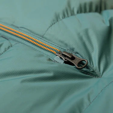 Within the sleeping bag, the trusted EXL® elasticated stitching system minimises empty airspace, limits draughts, and gently lifts the inner fabric away from the down, promoting full loft for maximum thermal efficiency. In addition, a full-length Gemini™ zip baffle prevents heat loss along the entry area and is reinforced to avoid snagging. The low-profile magnetic Lode Lock™ closure and adjustable collar drawcords offer a reliable, intuitive operation—even in the dark.
