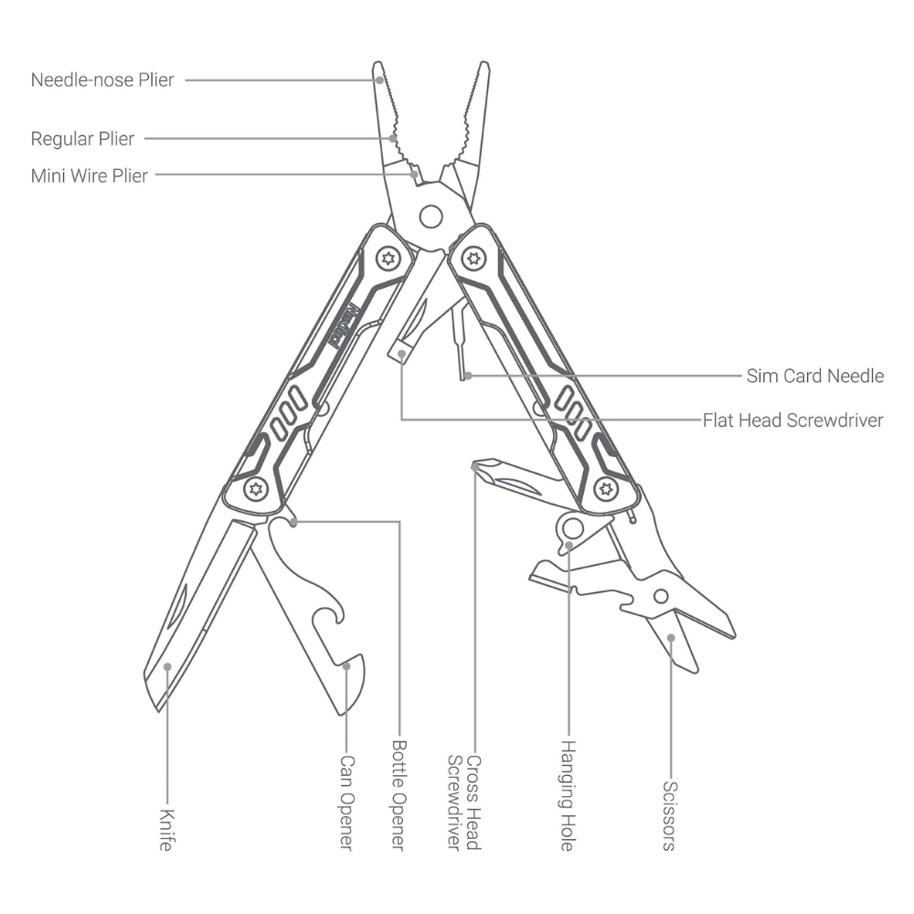 From pliers and scissors to screwdrivers, a bottle opener, SIM pin, and more, this pocket-sized multitool gives you everything you need for life on the go. At just 80g, it goes wherever you do without weighing you down.