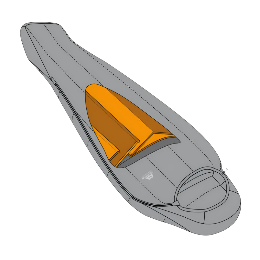 Mountain Equipment Nova II Women's Sleeping Bag in Ink/Pumpkin Spice - product preview showing Polarloft synthetic insulation and Mountain Fit construction