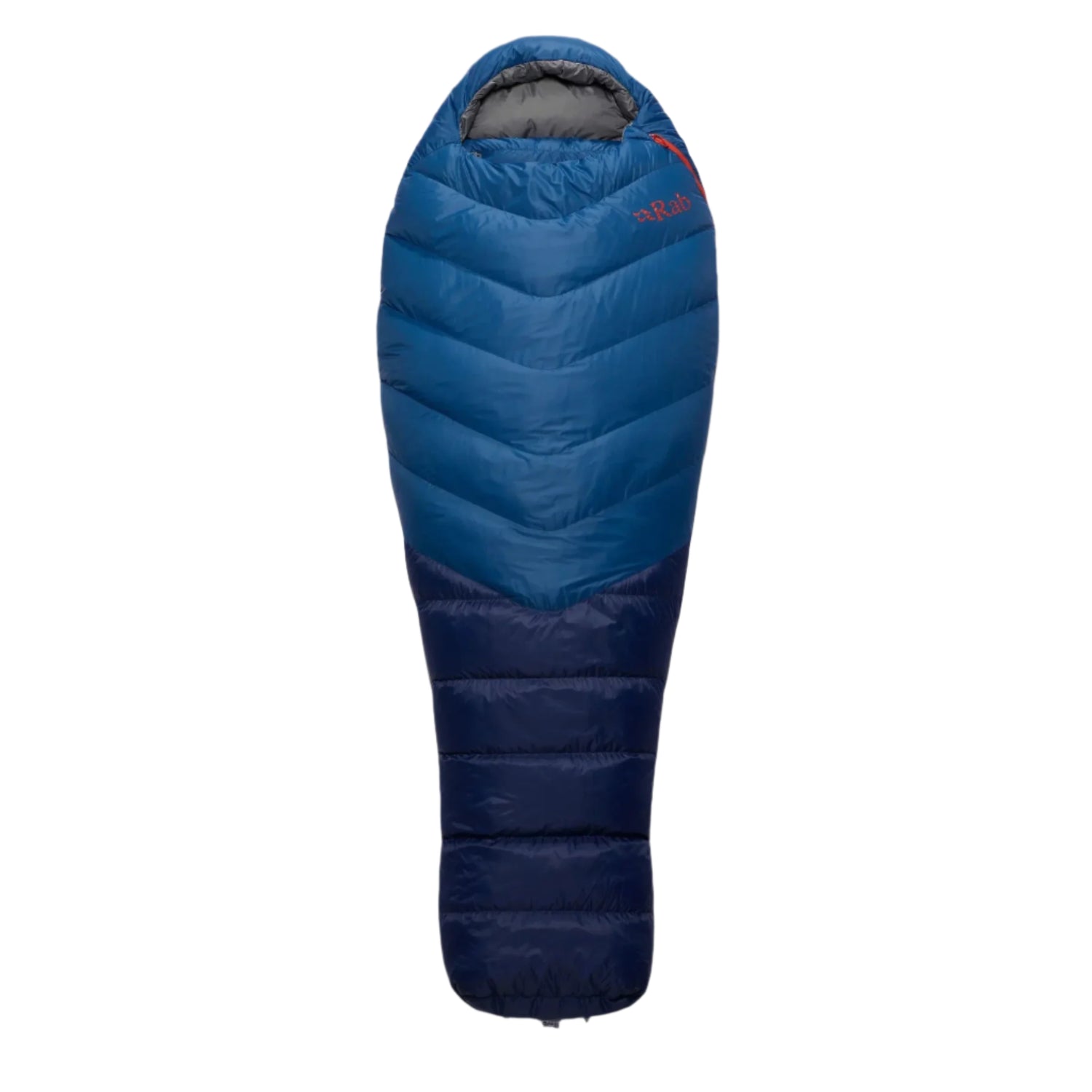 The Alpine sleeping bag is constructed with innovative techniques to optimise down performance. The trapezoid boxwall baffles enable the down to expand fully, eliminating cold spots and maximising thermal efficiency. Its chevron baffle design ensures even distribution of the down, enhancing stability and uniform warmth. Furthermore, the openings are tailored to minimise heat loss, incorporating a 3D-shaped down collar that can be cinched snugly for heat retention and a down-filled baffle along the zip to prevent warmth from escaping. A narrow mummy fit and an angled footbox reduce unnecessary weight and bulk while ensuring a restful night’s sleep.