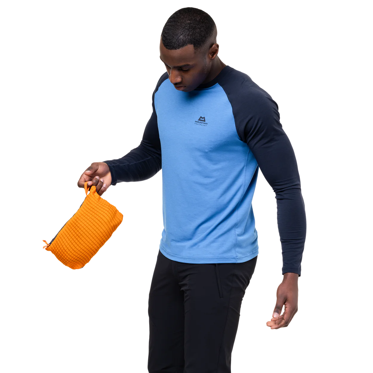 Engineered with a streamlined, Active fit, the Aerotherm eliminates unnecessary bulk and layers neatly beneath a waterproof shell when conditions demand it. A drawcord-adjustable hem allows for fine-tuning of fit, while elastane-bound cuffs help seal out the wind. The adjustable Mountain Hood, edged with elastic, provides secure coverage in blustery weather or when running, and it neatly rolls away when not required. The sleeves feature a reversed micro-grid lining to avoid catching on other layers, and articulated shaping ensures freedom of movement during technical climbs or scrambles. Essentials can be safely stowed in zipped hand and chest pockets, and the jacket packs down into one of its own pockets, complete with dual carry loops for attachment to a harness or backpack.
