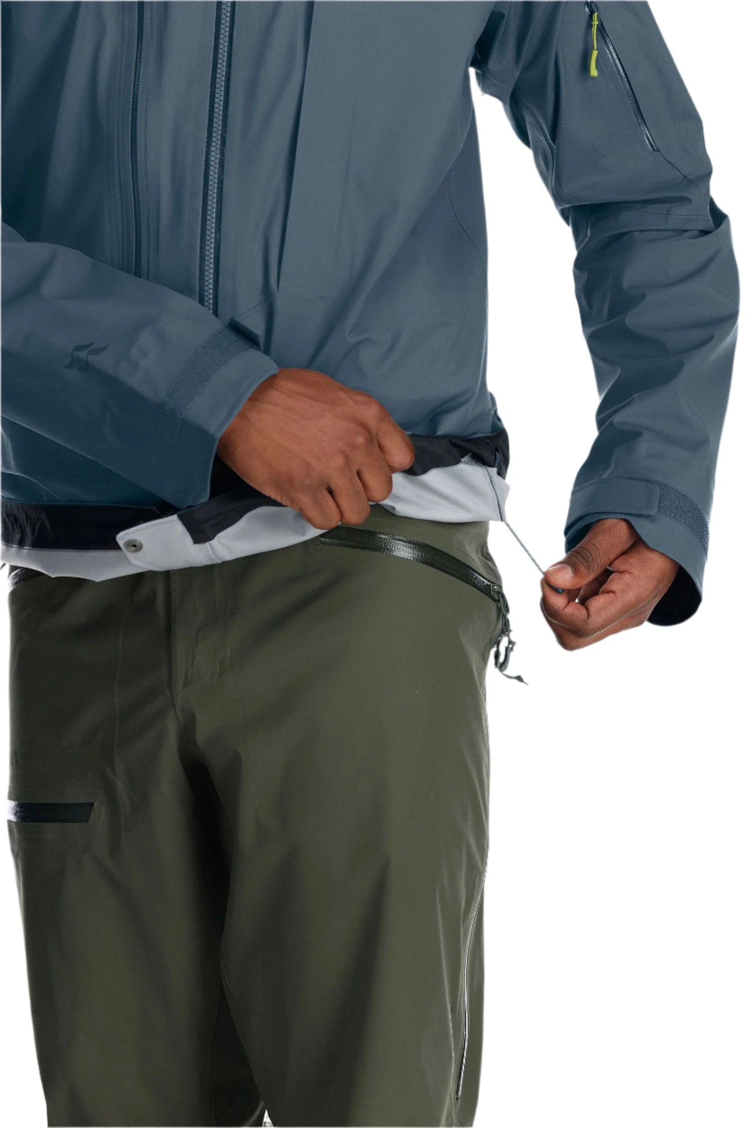 - A dual-sided rear hem adjustment with concealed cord locks and an anti-snag tether provides a customisable fit.