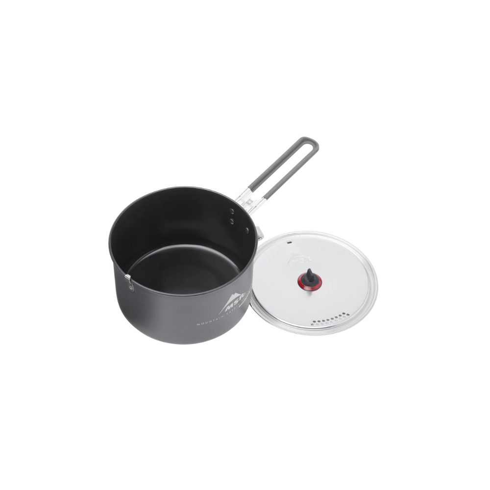 • The 2.5-litre non-stick pot, coated in Fusion® ceramic and made from aluminium, features a foldable Talon™ handle for compact storage.