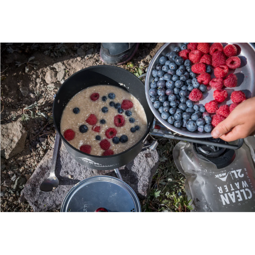 • The system has room to nest an optional 8-oz MSR® IsoPro™ fuel canister (sold separately), enhancing packability.