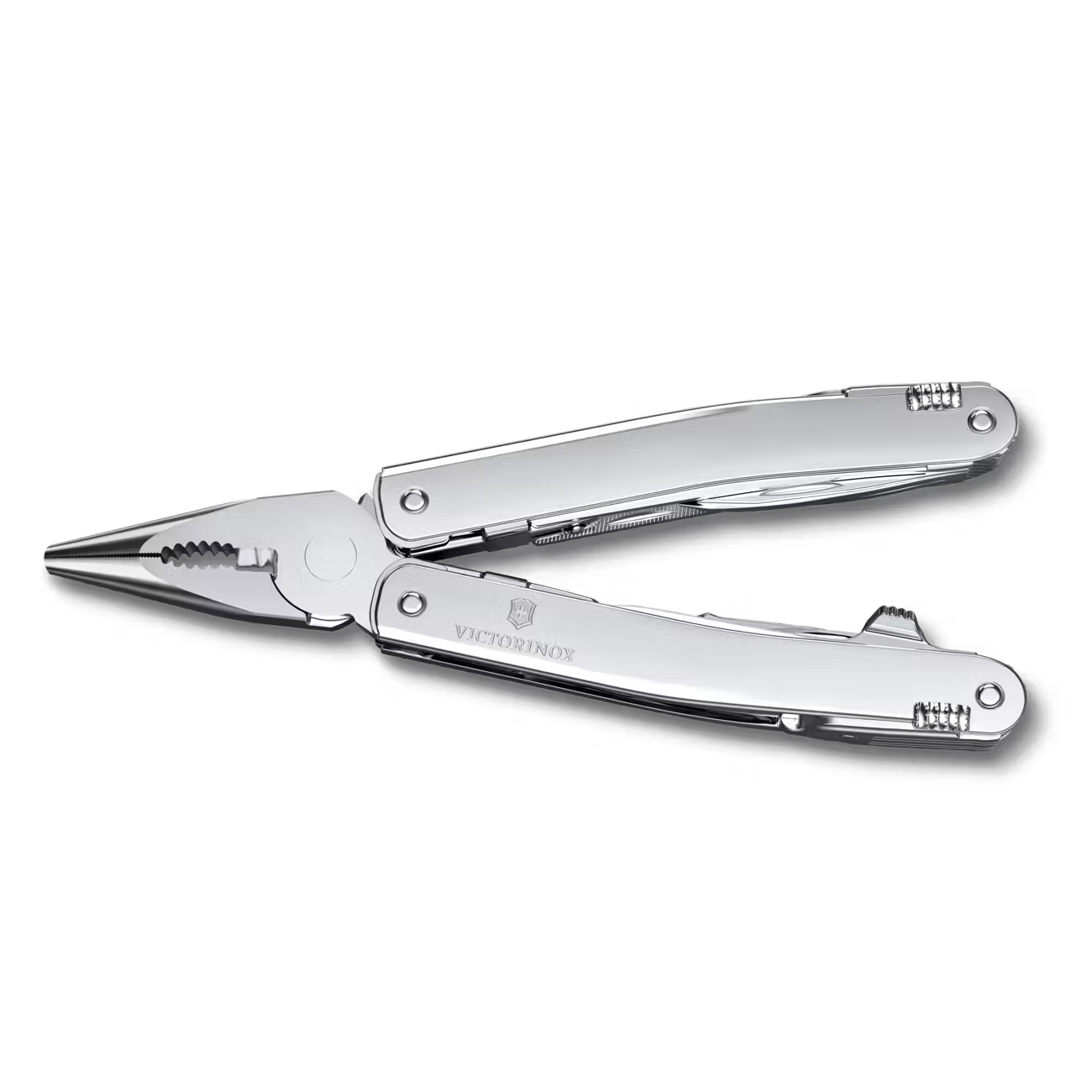| Tools | Needle-nose pliers / Wire cutter for thin and soft wire up to 40 HRc / Hard wire cutter / Blade, large / Can opener / Screwdriver 3 mm / Bottle opener / Screwdriver 2 mm / Reamer, punch / Pulling hook / Scissors / Wood saw / Metal saw / Metal file / Phillips screwdriver 1/2 / Chisel 7 mm and scraper / Cable cover longitudinal cutter / Cable cover crossways cutter / Wire stripper and scraper / Lanyard hole / Coupling for corkscrew |