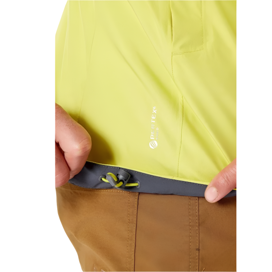 The jacket features an adjustable hem and cuffs, along with deep-venting pit zips that allow the fit and ventilation to be tailored to changing conditions. Its hood, equipped with a polymer peak, offers two-way adjustment for dependable visibility, while the zipped handwarmer pockets are spacious enough to hold a map.