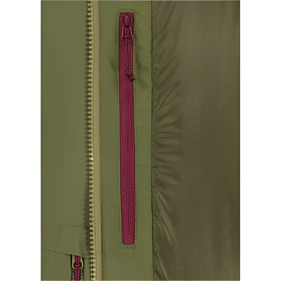 - Four external pockets (one Napoleon, two hand, and one sleeve) are equipped with YKK® AquaGuard® zips.