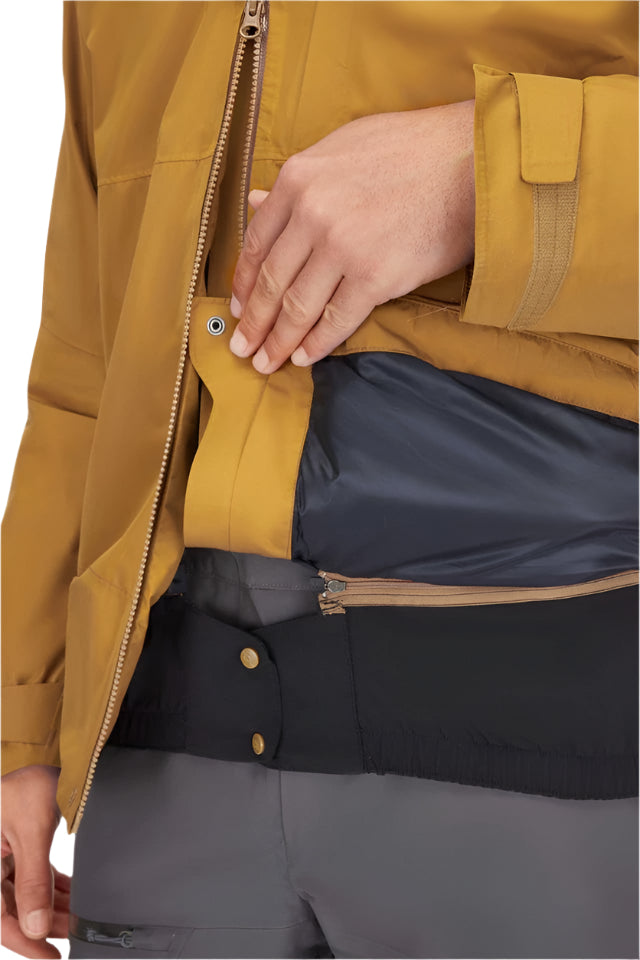 - A removable stretch powder skirt and fully adjustable drawcord hem provide an additional layer of protection from snow.