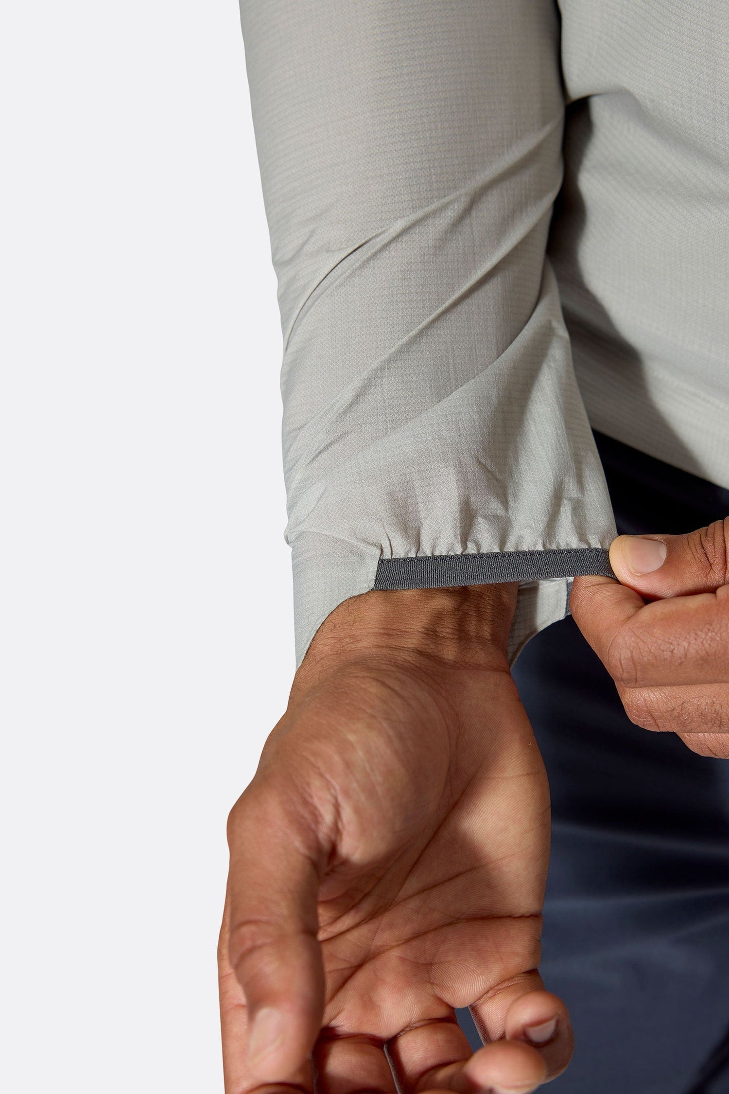 - Secure elasticated cuffs provide a snug fit while offering enough stretch to vent the forearms and maintain easy access to a sports watch.