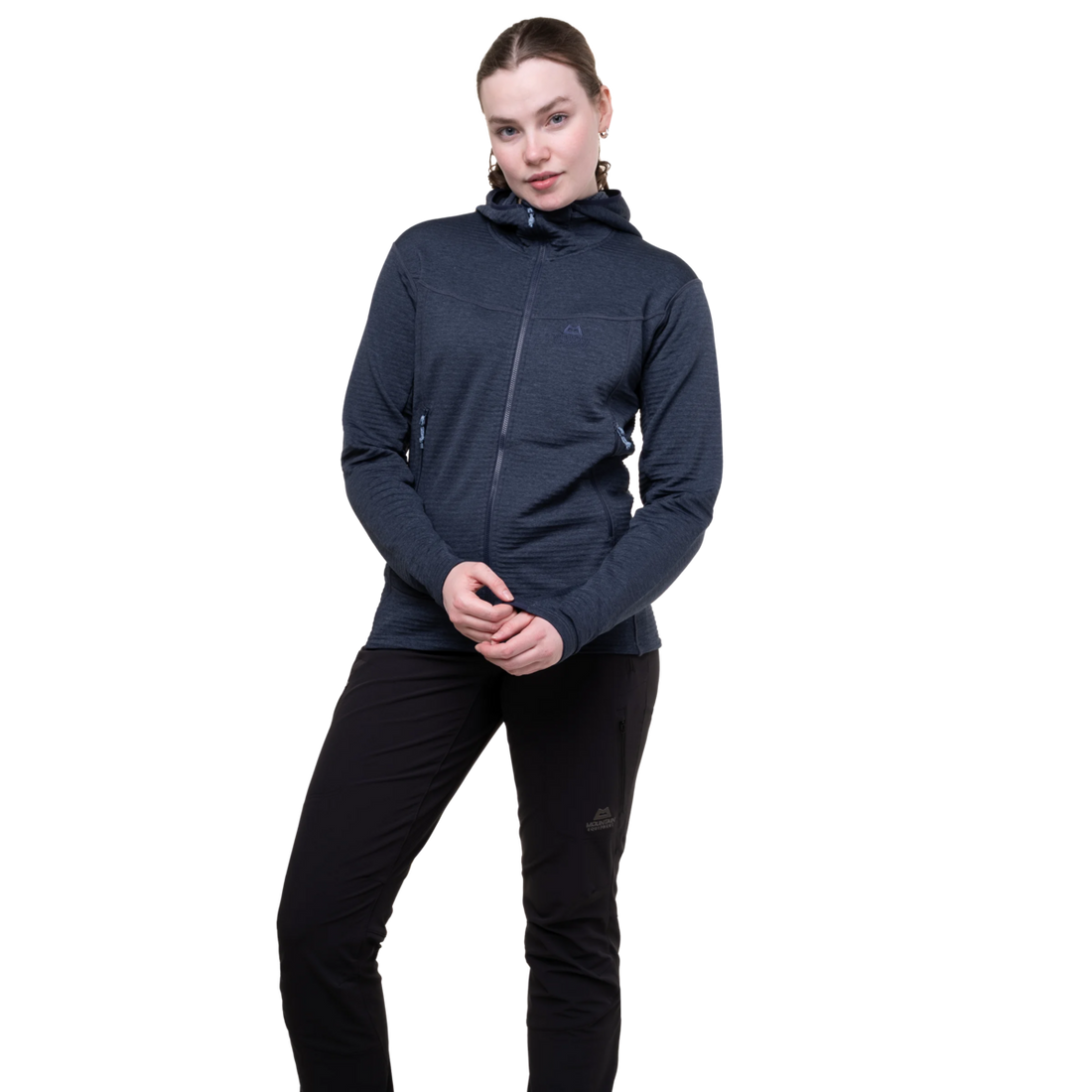 The Mountain Equipment Apiro Hooded Women's Jacket is a midweight fleece jacket that provides unparalleled breathability and quick drying capabilities.