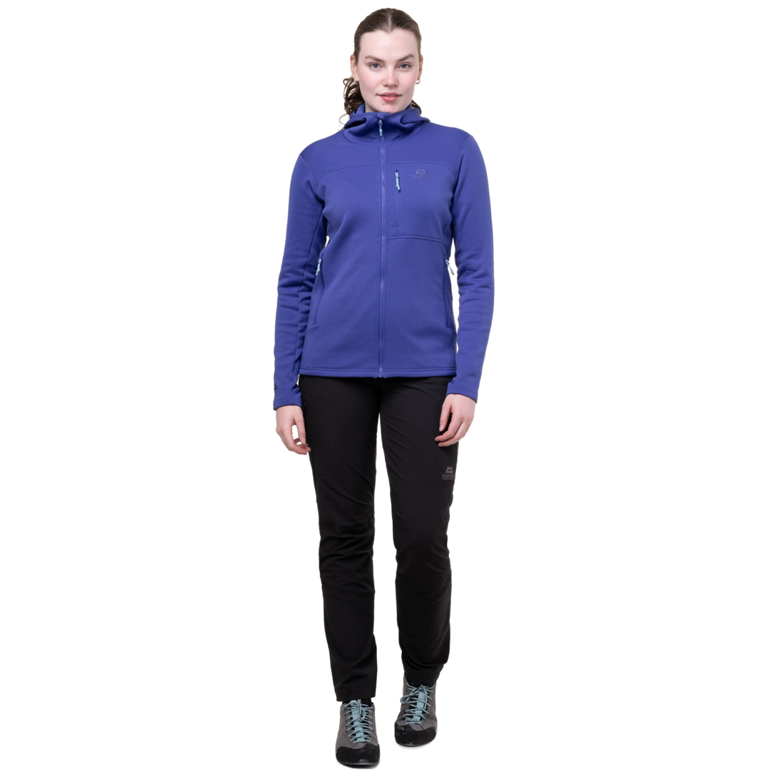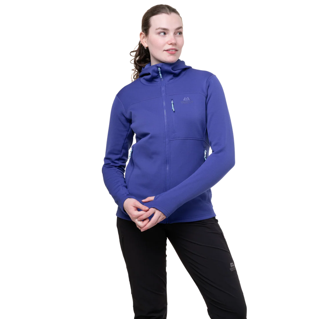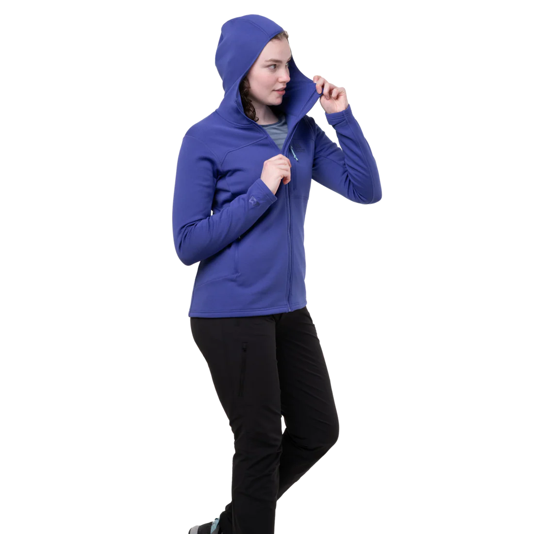 The Mountain Equipment Durian Hooded Women's Jacket is a midweight fleece that offers a well-balanced combination of warmth, breathability, and protection for ski touring and mountaineering.