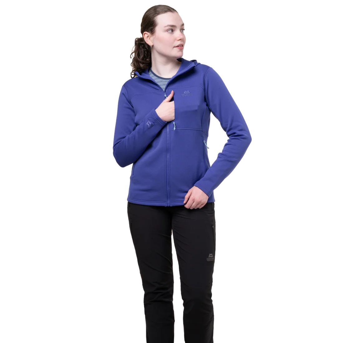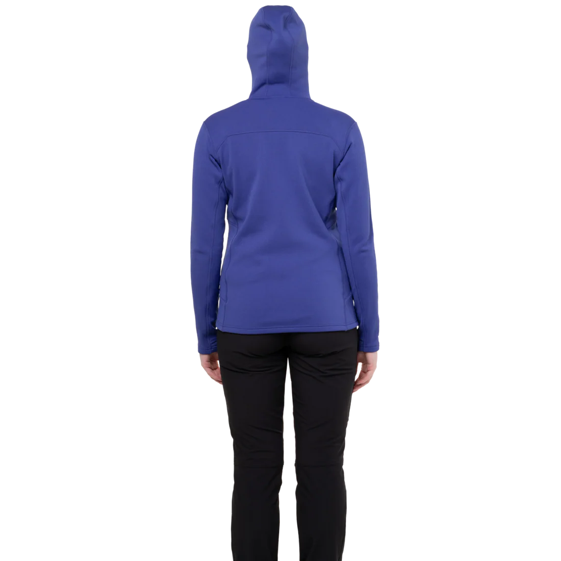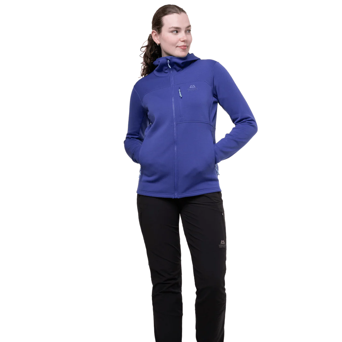 The Mountain Equipment Durian Hooded Women's Jacket is a midweight fleece that offers a well-balanced combination of warmth, breathability, and protection for ski touring and mountaineering.
