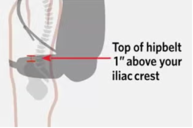 This buckles above your hips, letting you carry your pack's weight there instead of on your shoulders. You should position the belt pad 1 inch above your hips (or on your "iliac crest" to get all technical).