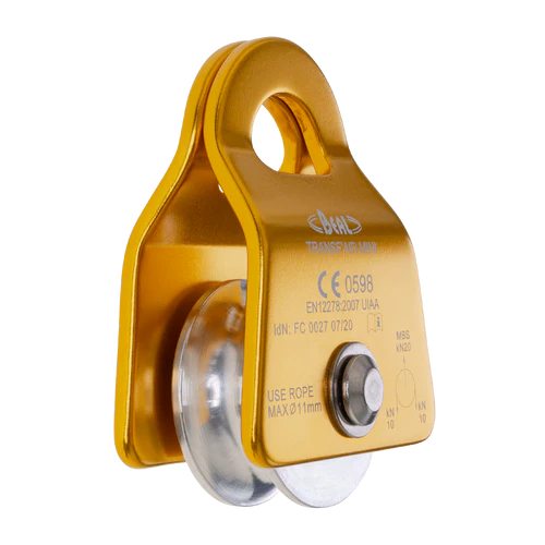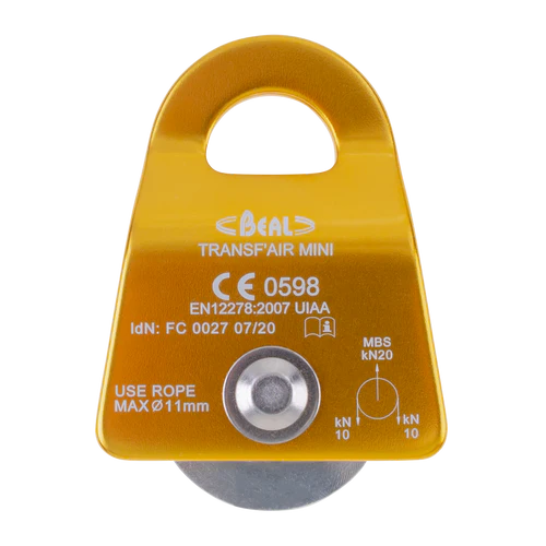 The TRANSF'AIR MINI pulley is a device created for load deflection, hauling, and coupling with a mechanical rope clamp. Its mobile flange allows easy positioning at any point along the rope, making it particularly suitable for crevasse rescue operations. A sheave mounted on a bronze ring guarantees exceptional performance, while the stainless steel shaft and washer contribute to its durability. Additionally, to ensure traceability, each pulley is assigned an individual identification number.