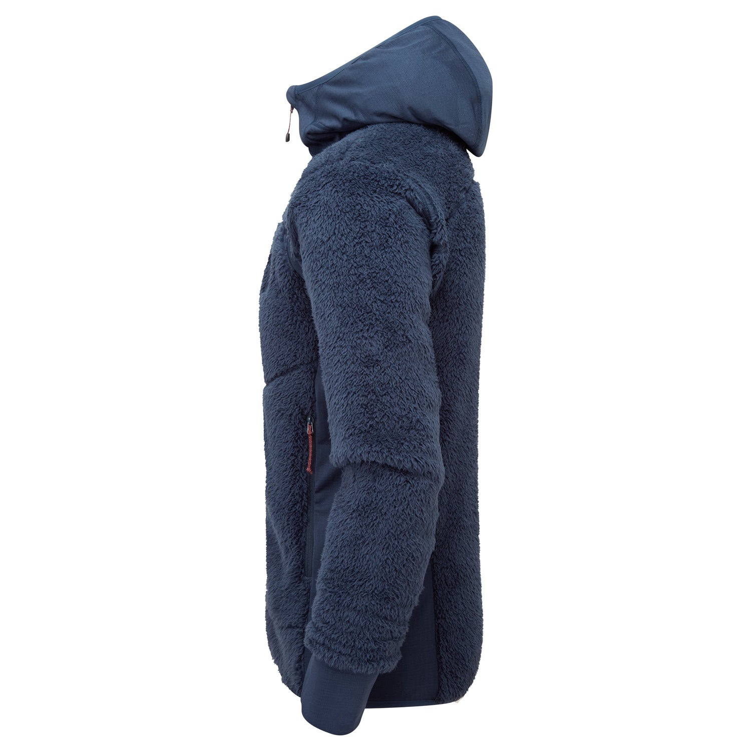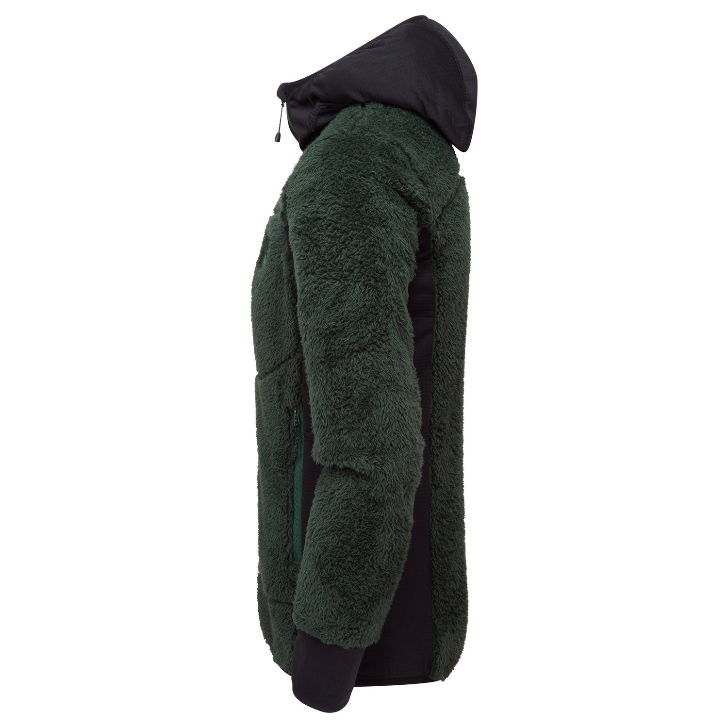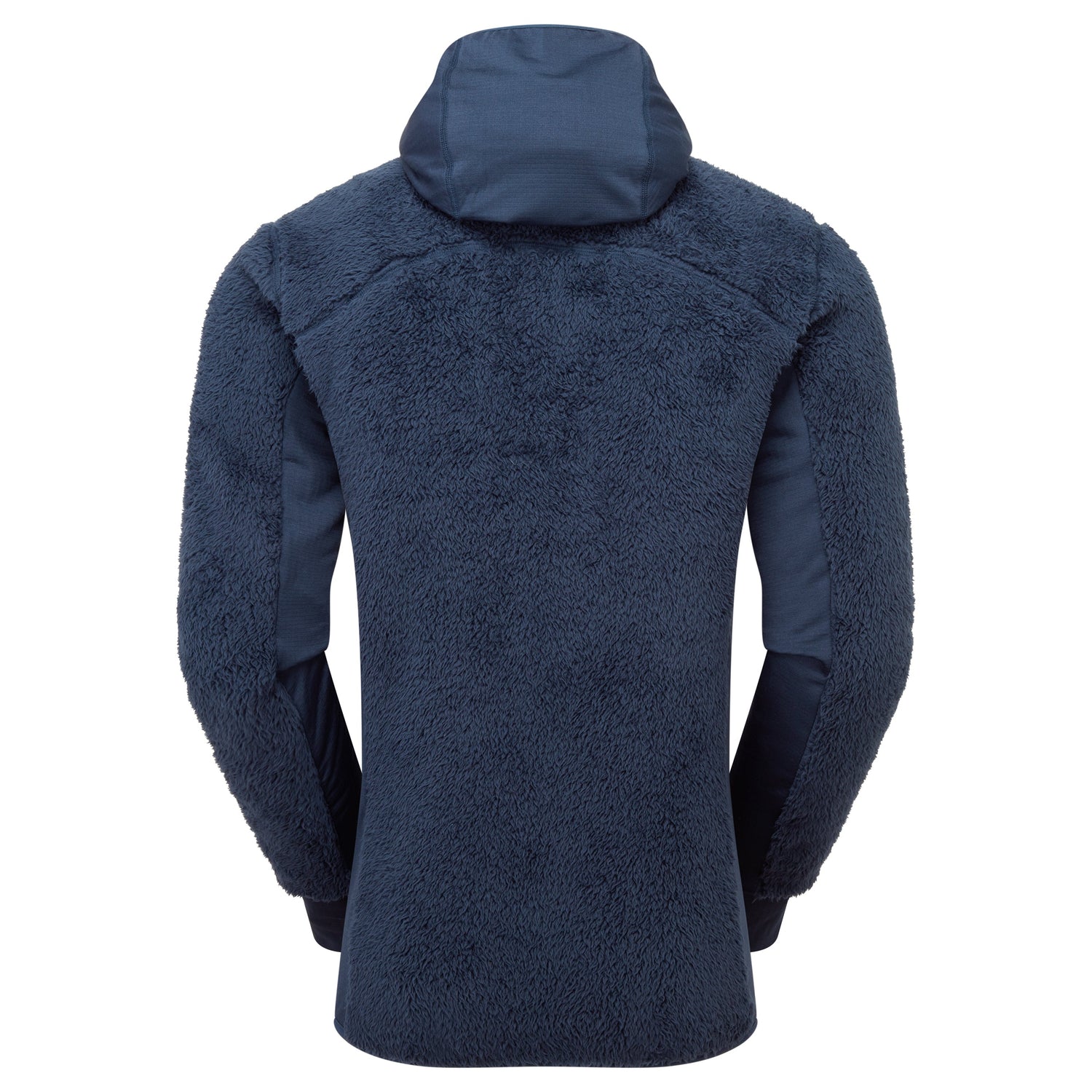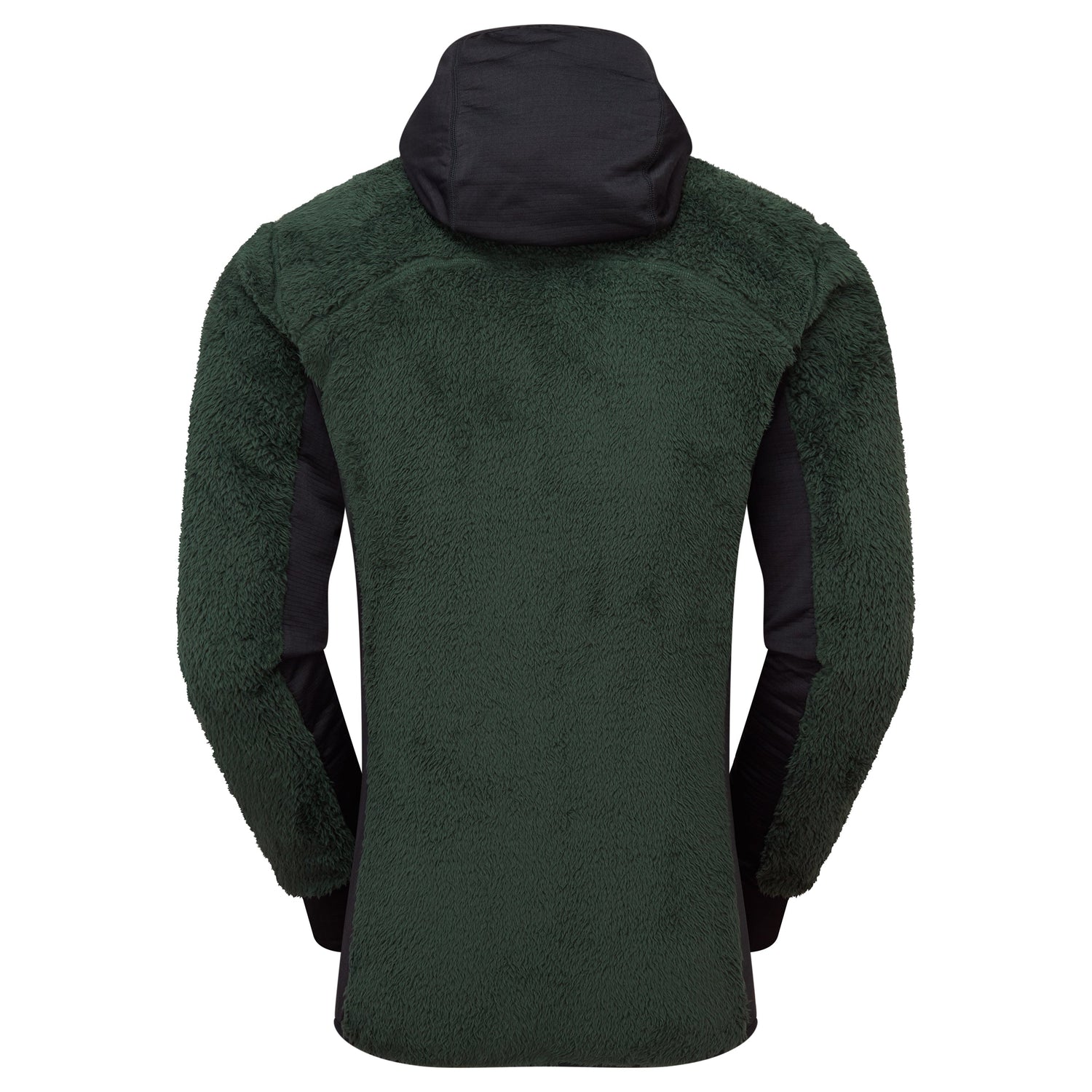 Mountain hoody that combines high pile fleece with grid stretch panels for high levels of warmth and wicking performance.