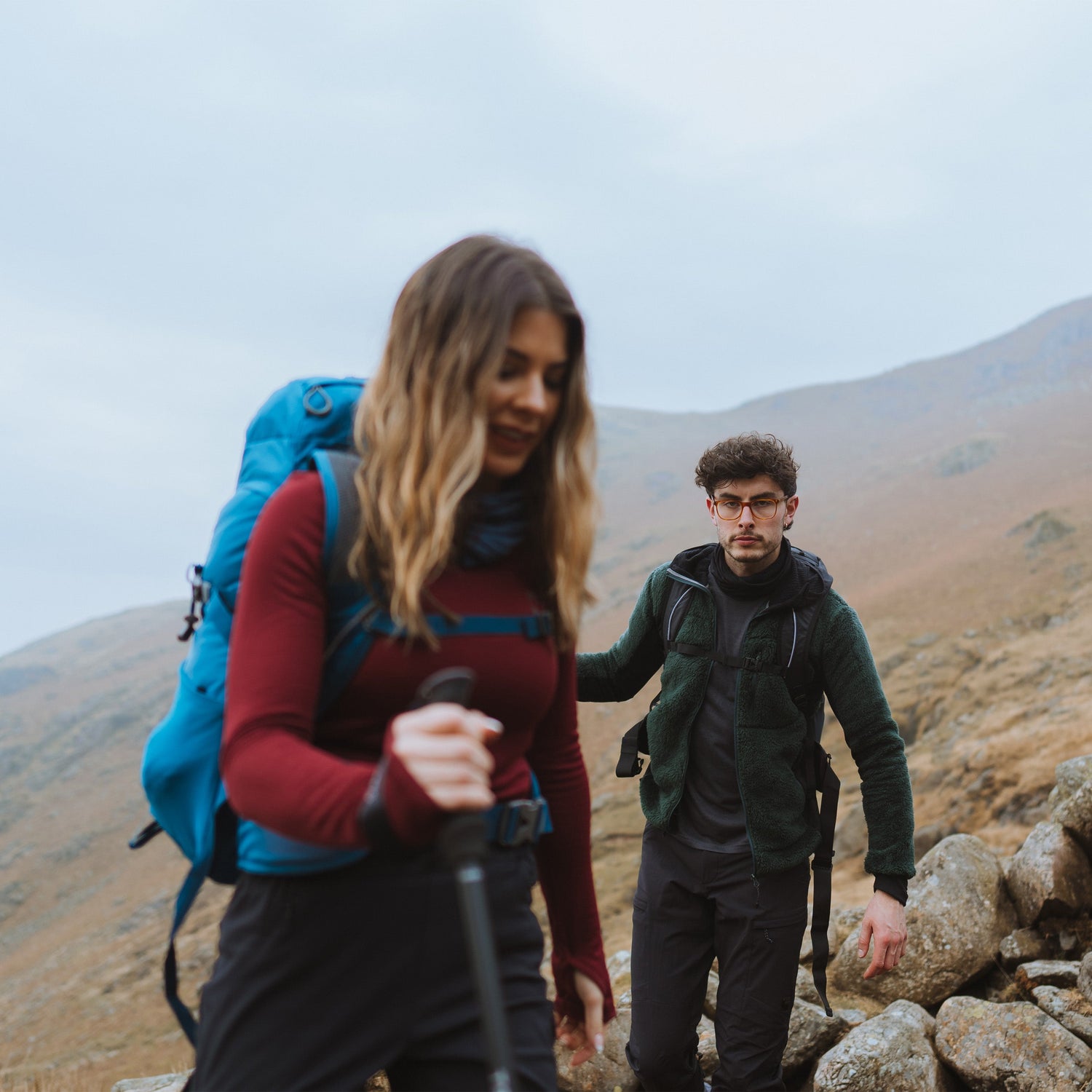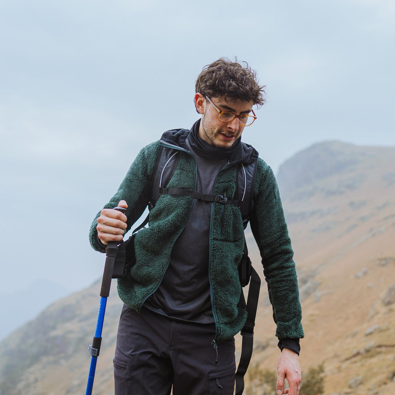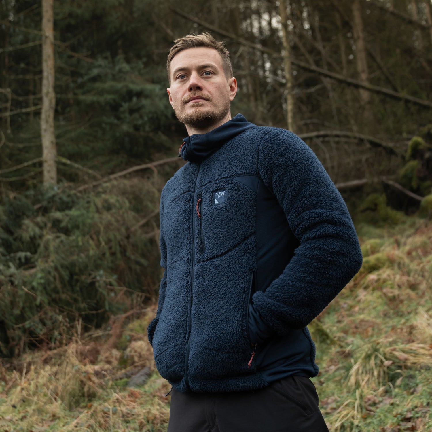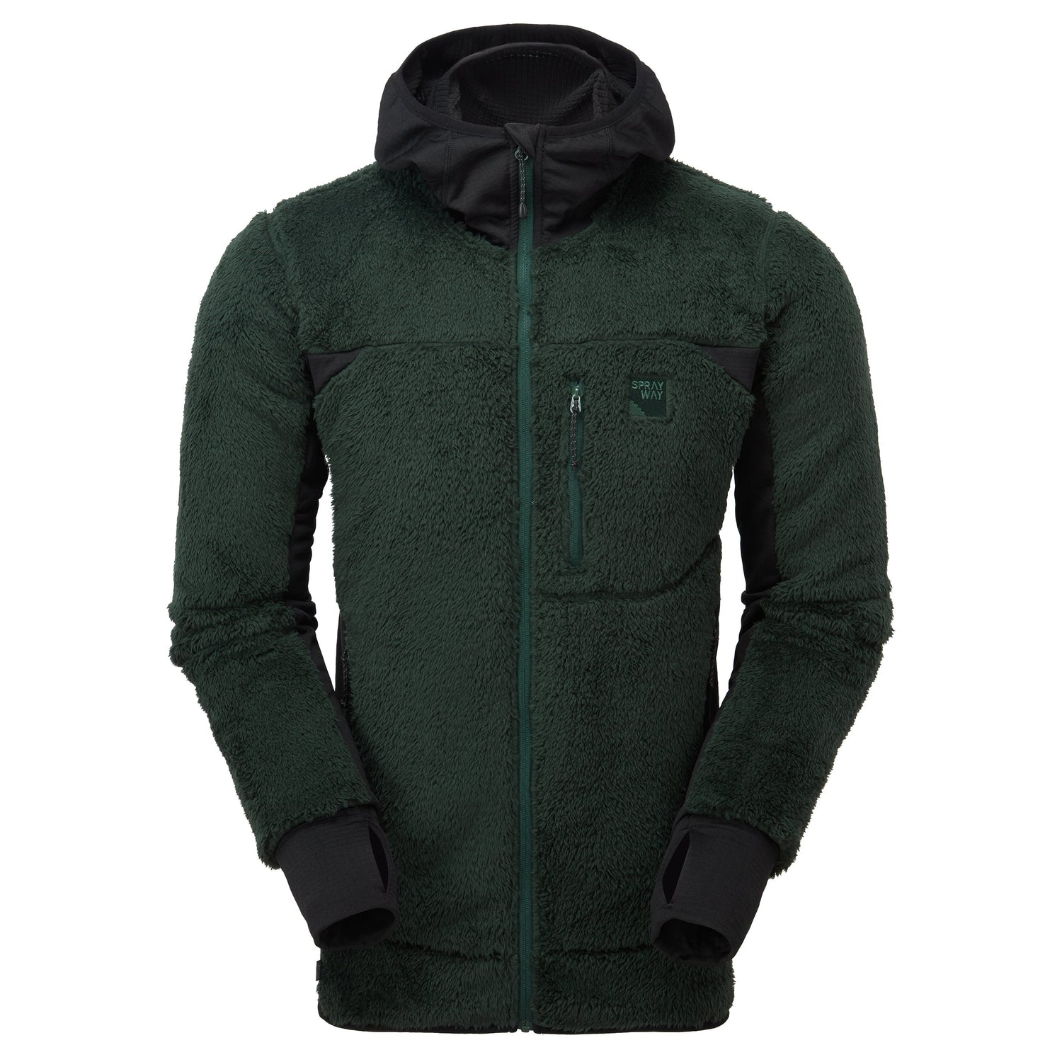 Mountain hoody that combines high pile fleece with grid stretch panels for high levels of warmth and wicking performance.