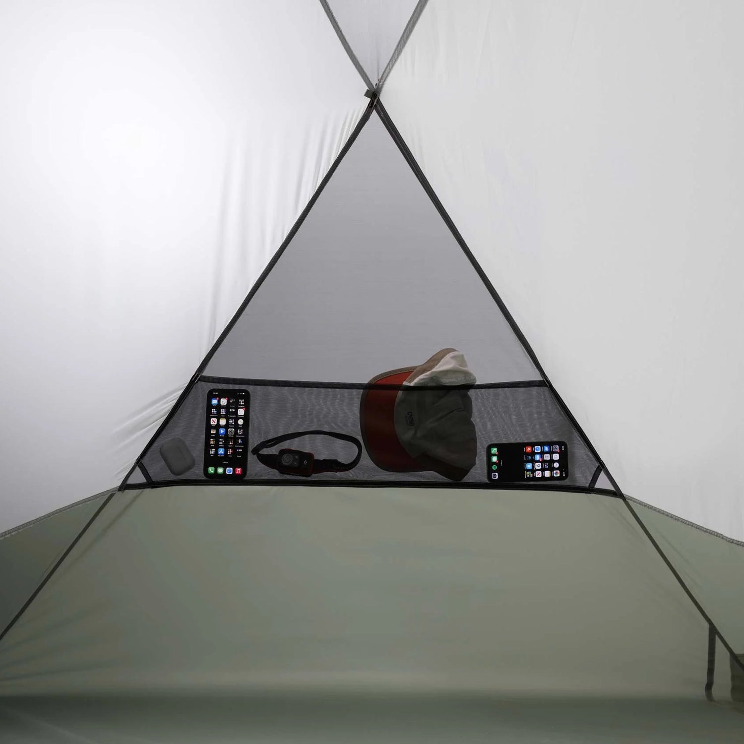 The Inside: The interior is a roomy 30 sq. feet (2.82 sq.m), so you can stretch out in camp. It easily accommodates modern wide sleeping pads without overlap, thanks to the true rectangular floor. The tent body is a mix of mesh and solid fabric for the perfect blend of breathability and privacy. The no-curve tent doors feature zippers that are easy to use with one hand. They also zip closed to a single point, so you always know where to open the door, even in the dark. Tech-friendly pockets feature cable ports at the corners for headphones and charging cords. Large overhead gear loft pockets are perfect for headlamps, sunglasses, and other quick-access items.