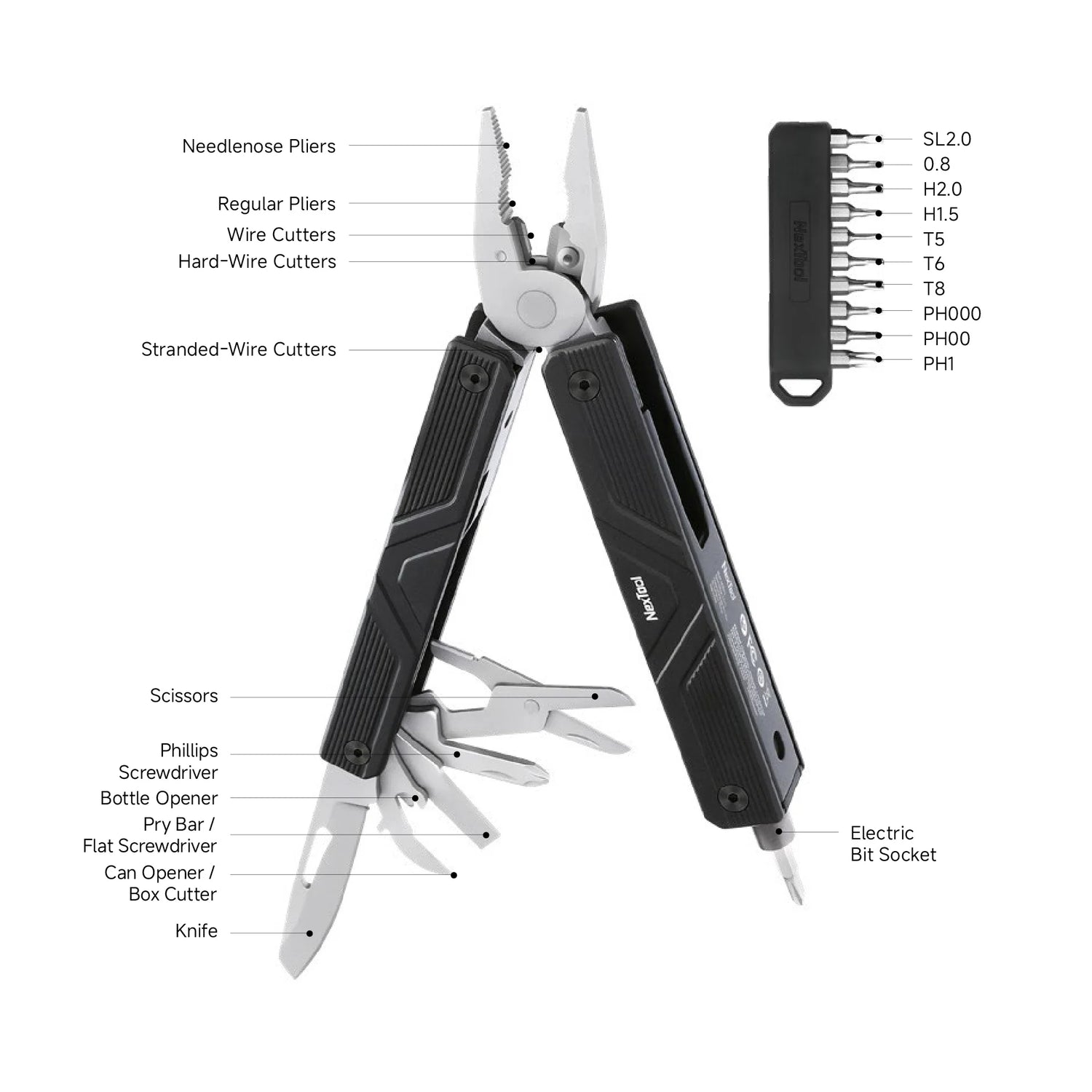 Nextool Gemini Multitool Open - 180.5mm Extended Length with 13 Essential Functions
