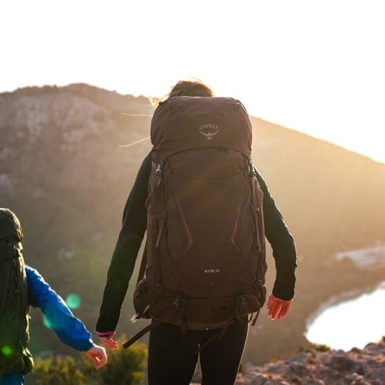 There's no reason not to hike with the Osprey Kyte 48 Women's Backpack in all weather. It features a zippered pocket at the base and is made with bluesign® approved materials and DWR treatments free of PFAS chemicals.