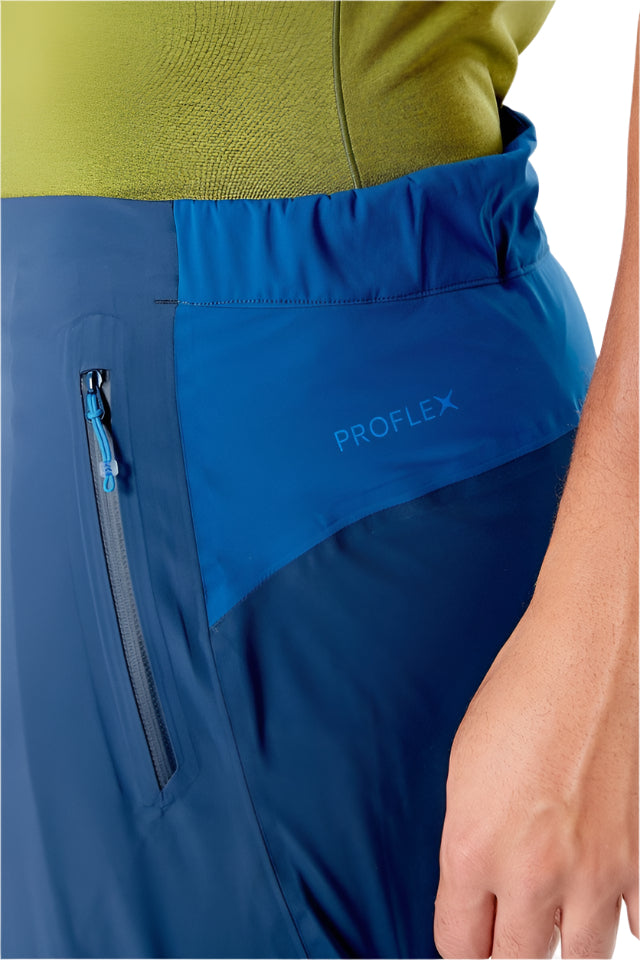 The Kinetic 2.0 Waterproof Pants, in their more rugged version, offer durability, a soft-touch feel, and exceptional breathability. These pants are specifically designed to withstand the demands of climbing, featuring reinforced, woven fabric panels in high-wear areas. The front is flat, with a low-profile waist adjustment to ensure compatibility with a harness. They retain a lightweight, minimalistic feel while offering reliable all-weather protection. The stretchy, breathable, and waterproof Proflex™ fabric shields from the elements while allowing ease of movement on steep terrain.