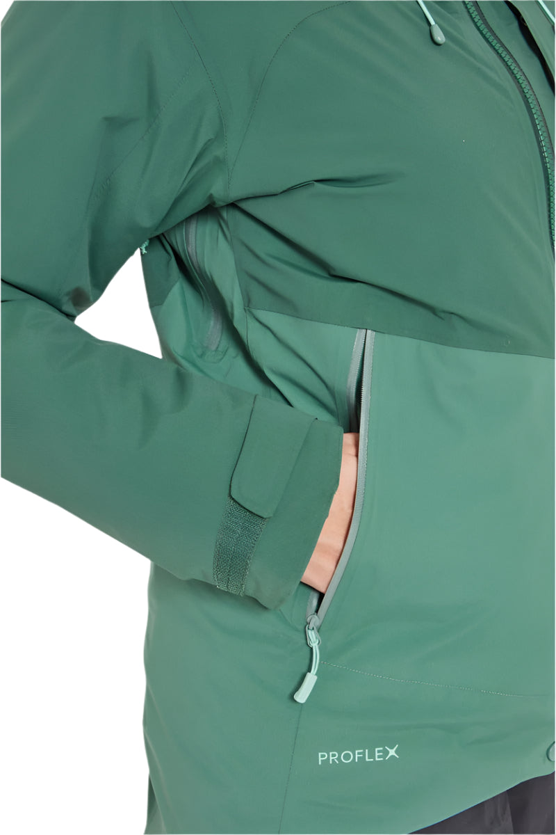 • Main Fabric: 20D Proflex™ stretch woven nylon 2-layer waterproof technology (84g/m²) HH: 20,000mm and MVTR: 25,000g/m²/24 hrs